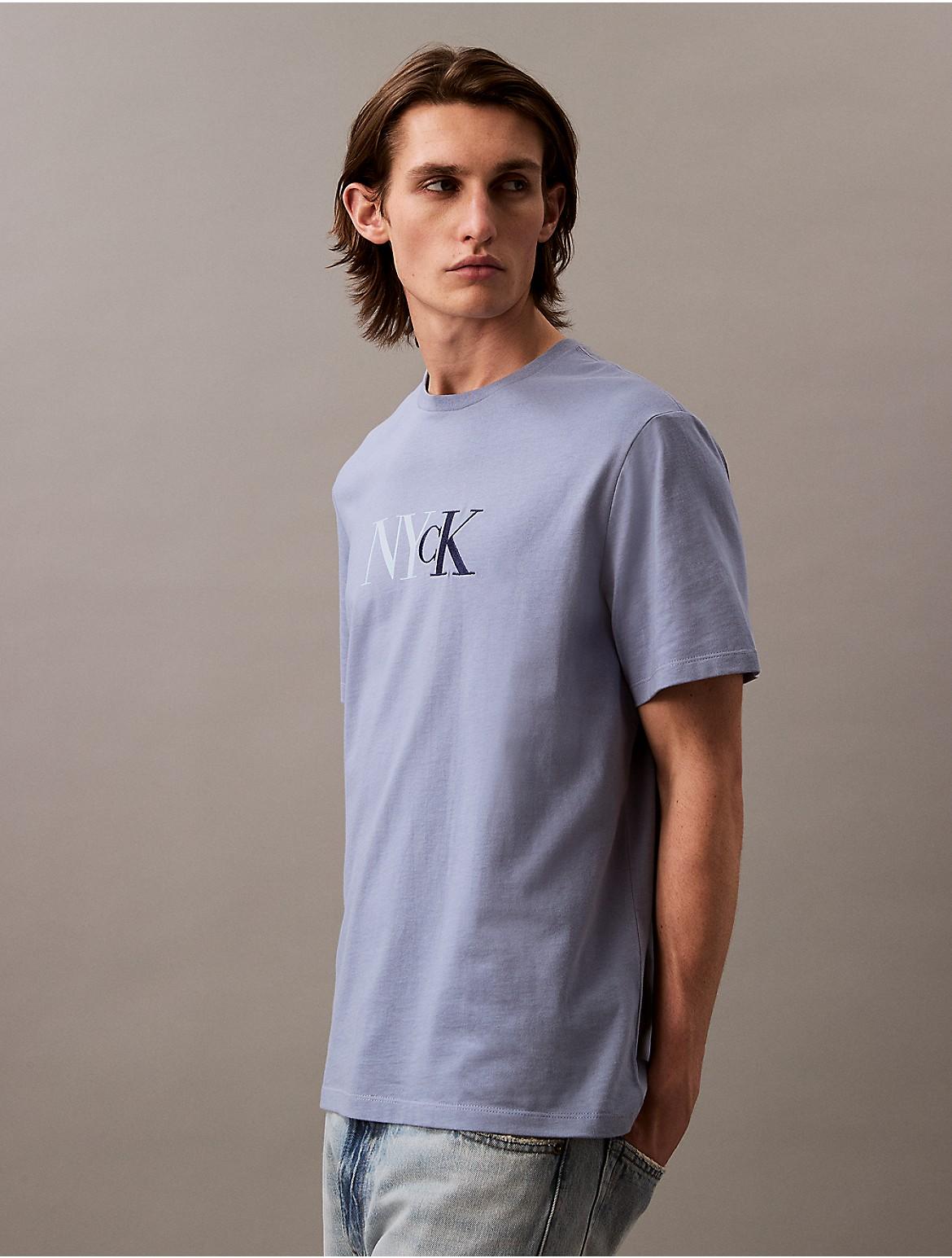 Calvin Klein Mens New York Script Logo Graphic Classic T-Shirt - White