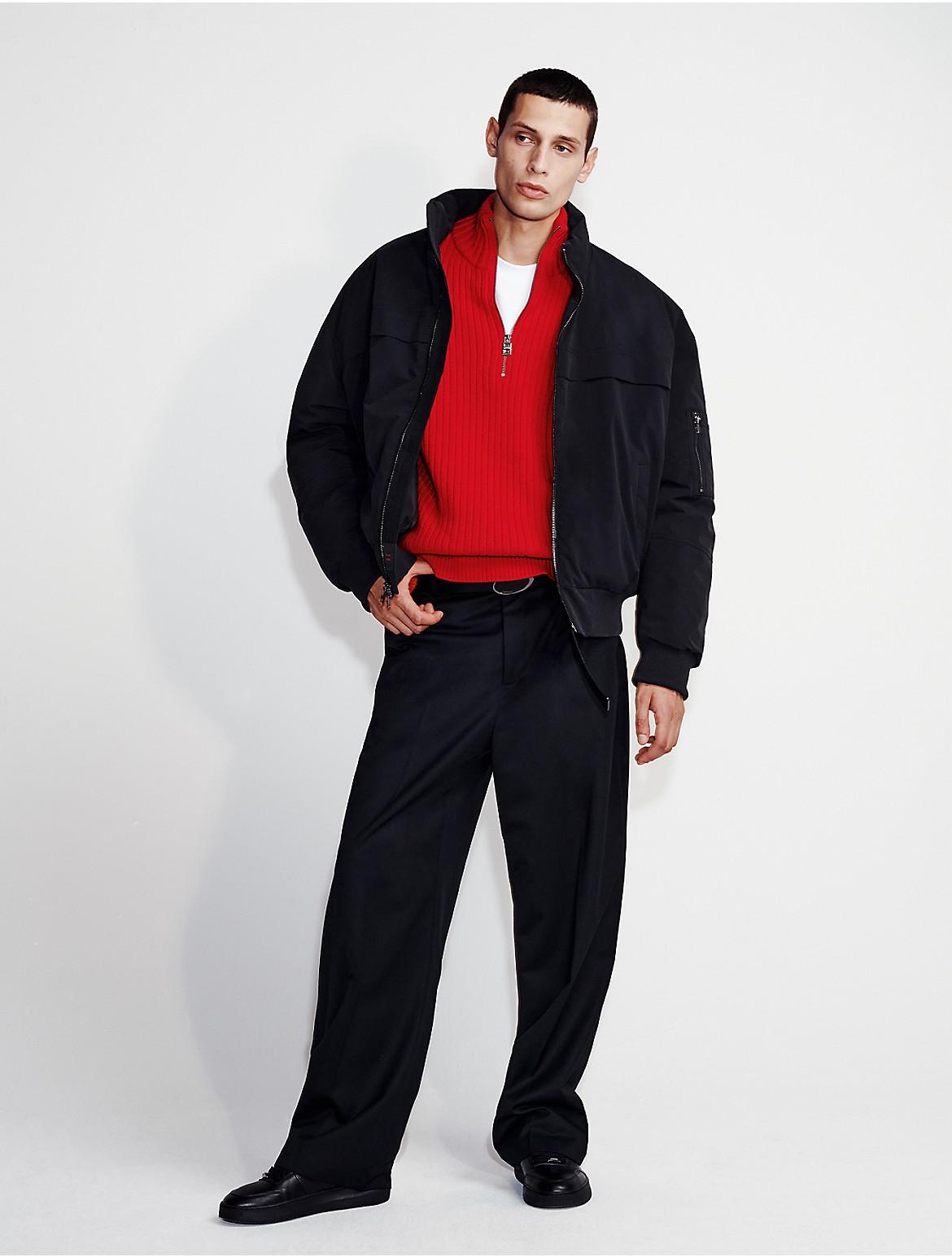 Calvin Luo for Calvin Klein. Inspired by the new year of the snake. A day-to-night celebration of tradition, through a modern lens. This soft sweater is made from a merino wool cashmere blend. Defined in a ribbed knit with a custom hardware logo pull. Material: 70% Superfine Merino Wool, 30% Cashmere.