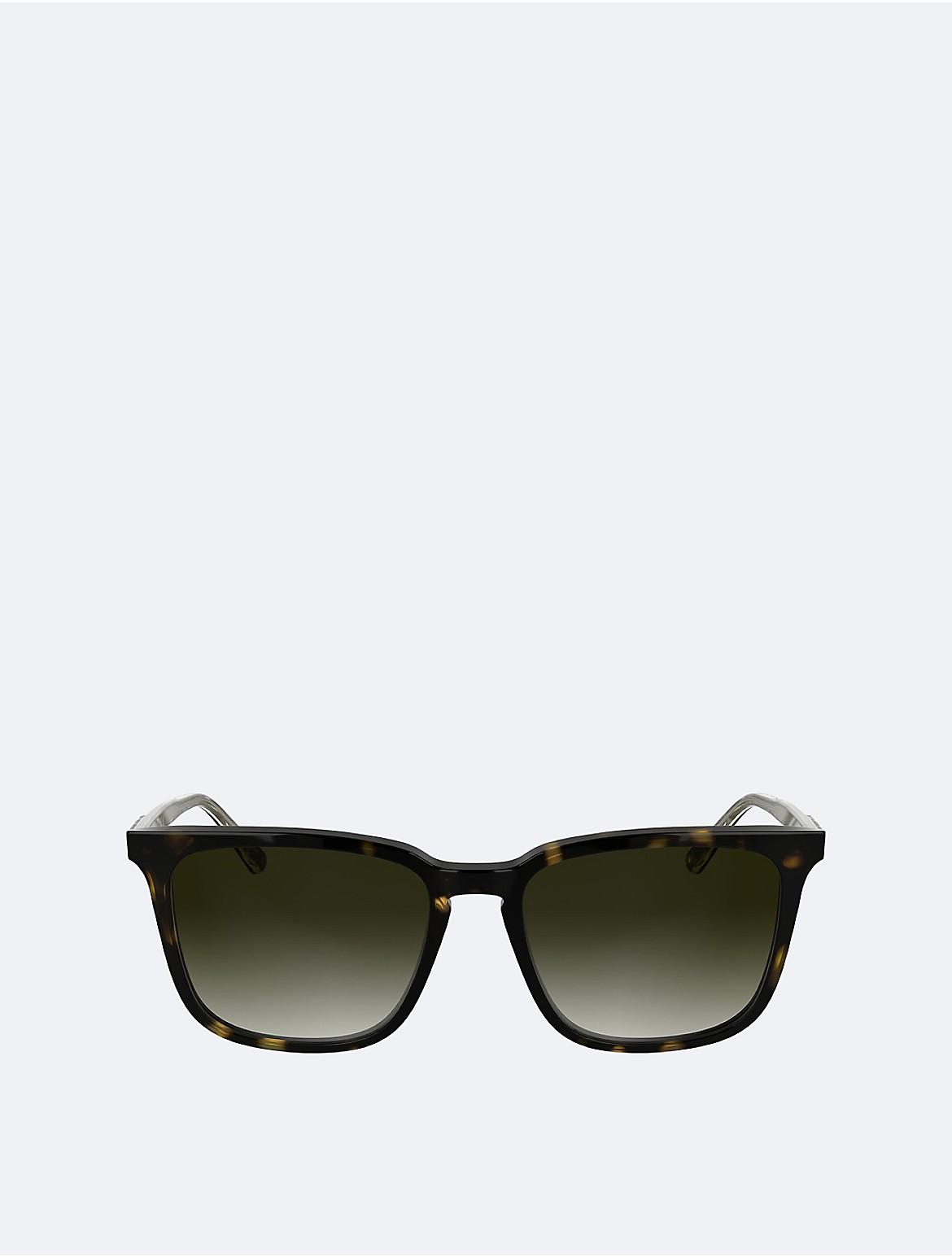 A slim modified rectangle frame in durable acetate. These sunglasses have 100% uva/b sun protection tinted lenses and Calvin Klein logos at the temples.