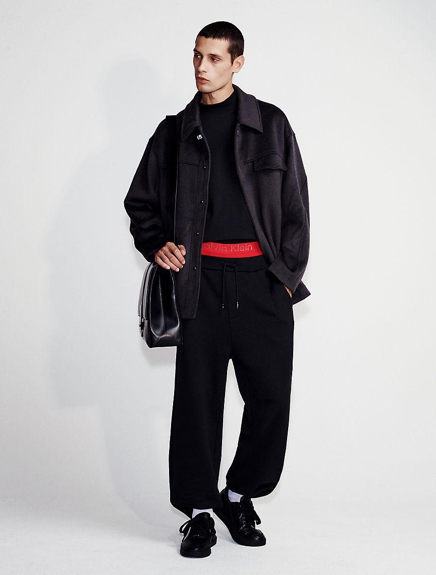 Calvin Luo for Calvin Klein. Inspired by the new year of the snake. A day-to-night celebration of tradition, through a modern lens. Crafted from a wool blend, this shirt jacket features a custom turn lock closure at the collar. Material: 70% Wool, 20% Polyester, 5% Cashmere, 5% Other Fibers.