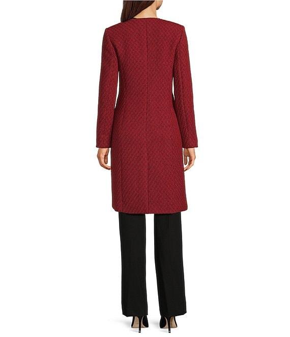 From Calvin Klein, this jacket features: Novelty fabrication Crew neckline Long sleeves Lined Open front Approx. 39" length Polyester Dry clean Imported.