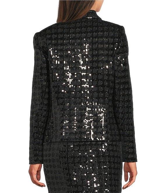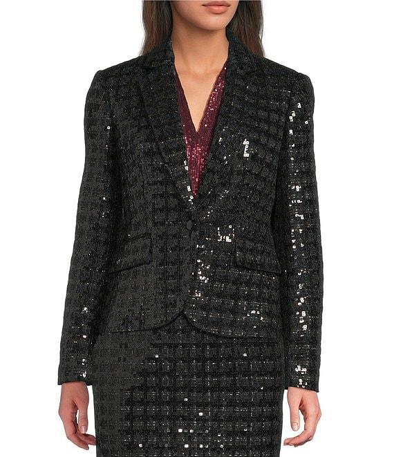 Calvin Klein Novelty Shine Notch Lapel Long Sleeve One Button Jacket