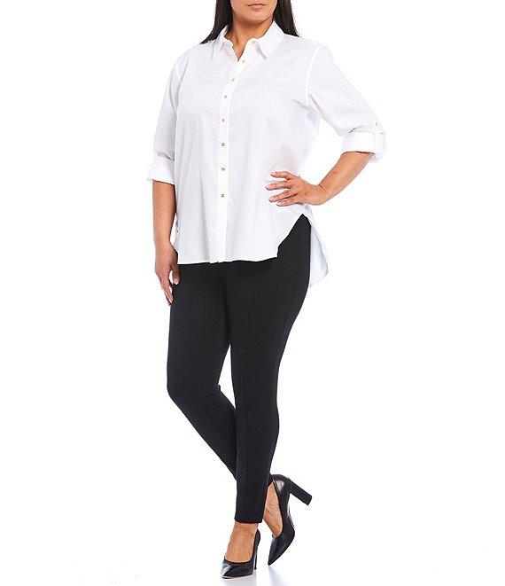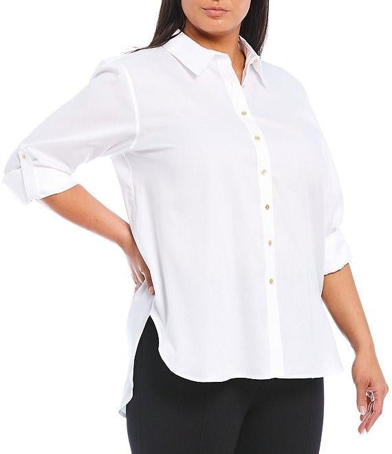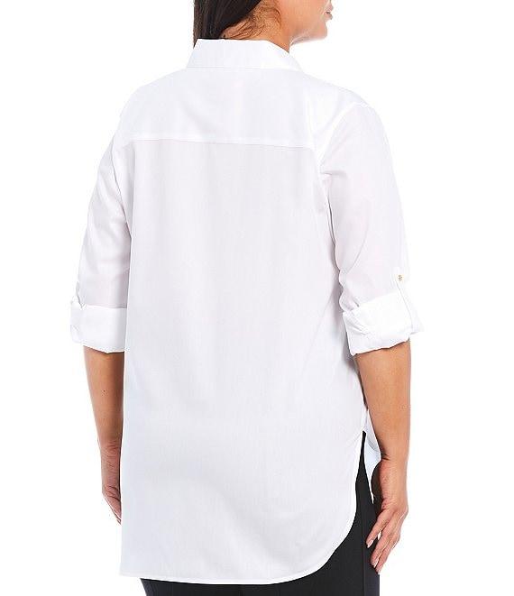 Calvin Klein Plus Size Non-Iron Point Collar Roll-Tab Long Sleeve Cotton High-Low Blouse