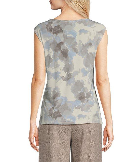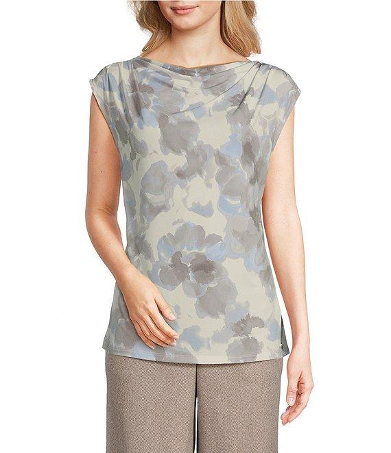 Calvin Klein Printed Matte Jersey Cowl Neck Cap Sleeve Top
