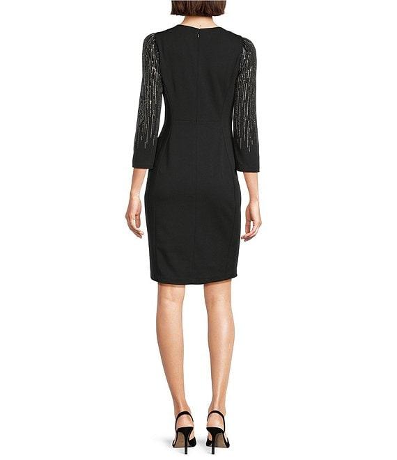Calvin Klein Scuba Crepe Round Neck Long Sleeve Sheath Dress