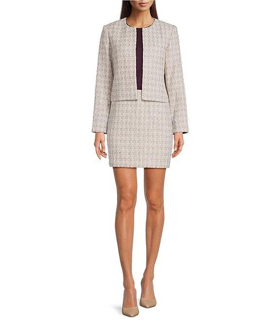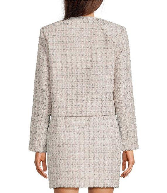 Calvin Klein Tweed Round Neck Open Front Jacket