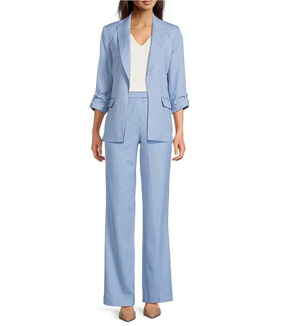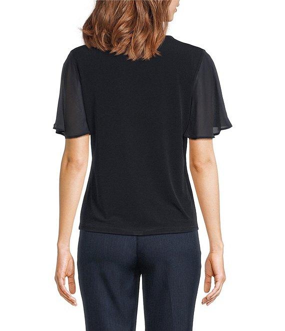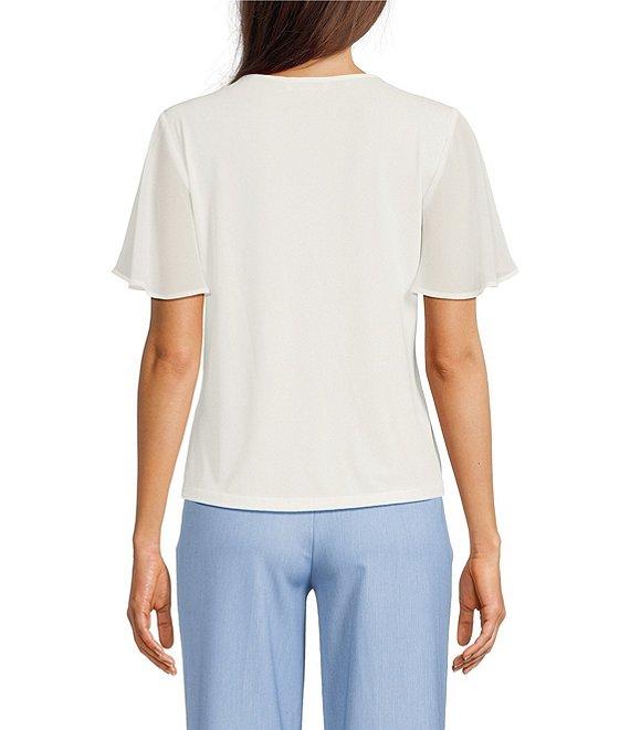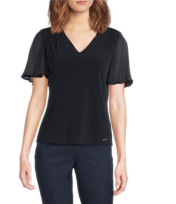 Calvin Klein V-Neck Ruched Shoulder Flutter Sleeve Blouse
