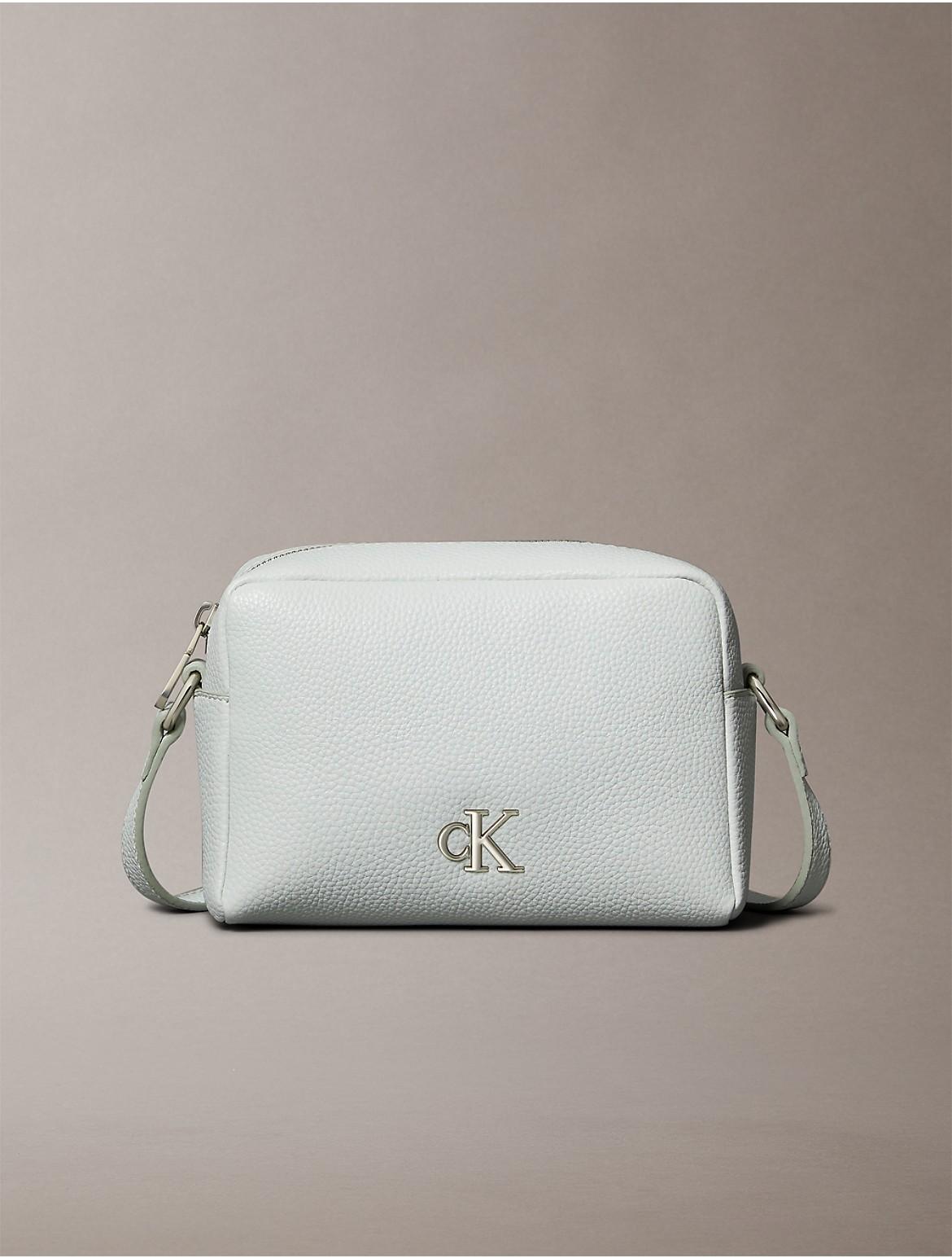 A modern camera bag with structured shaping. Adjustable at the shoulder strap for personalized wear. Finished with a metal CK monogram logo at the front. Material: 100% Polyurethane.
