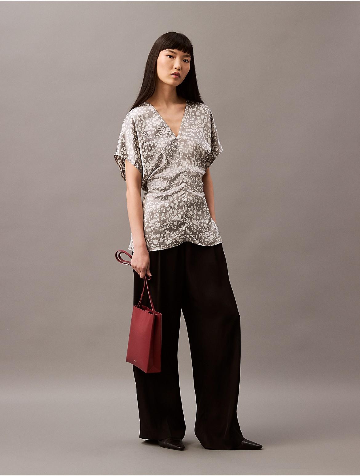 Calvin Klein Womens Crushed Satin Print Blouse 0