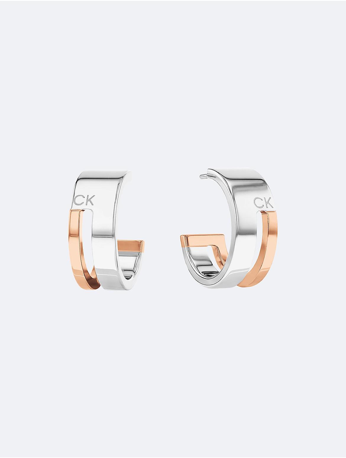 Distinct and sculptural, these earrings reflect the interplay between geometric shaping and negative space. Finished with an engraved CK monogram logo.