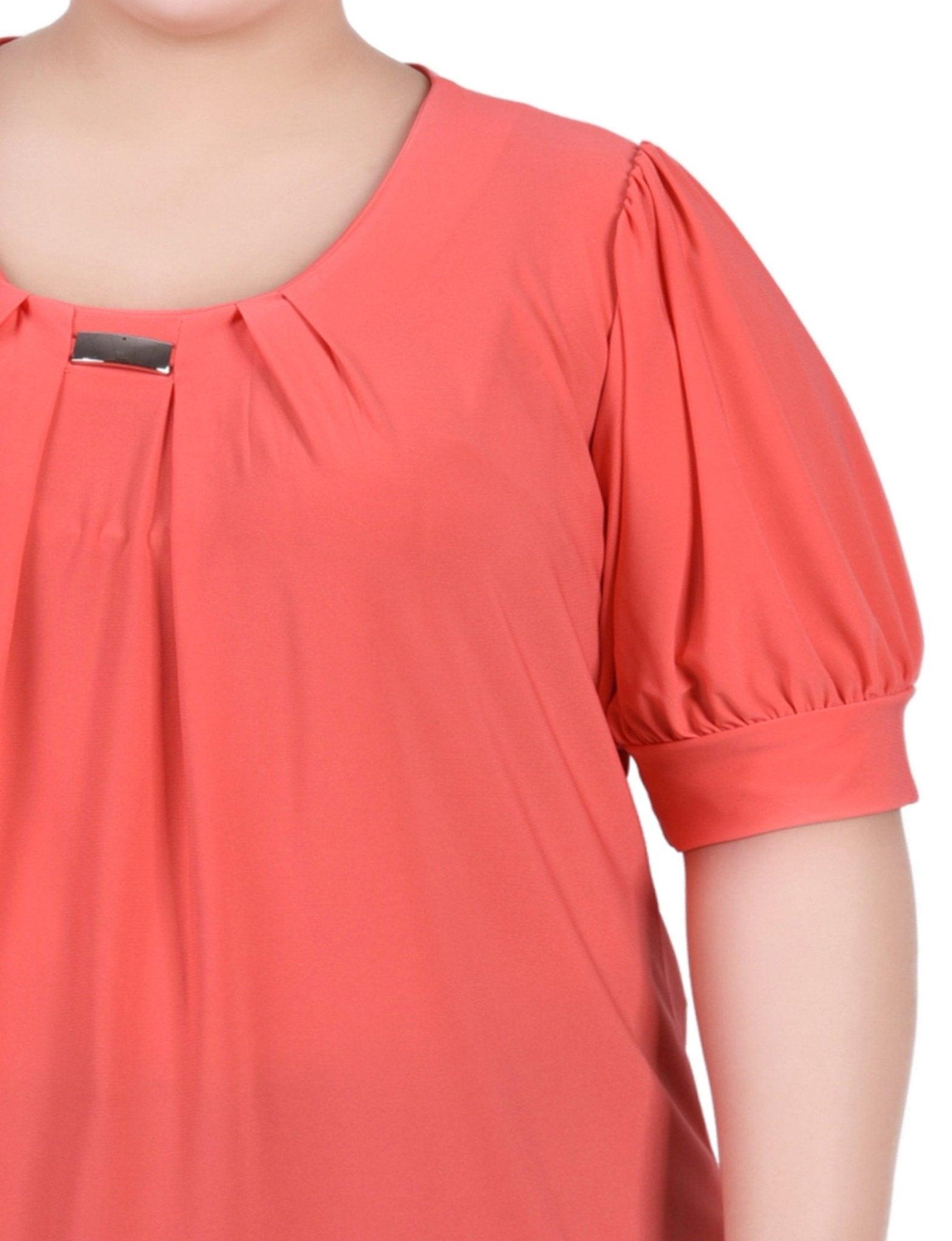 Calypso Coral Short Sleeve Balloon Sleeve Top With Hardware - Plus