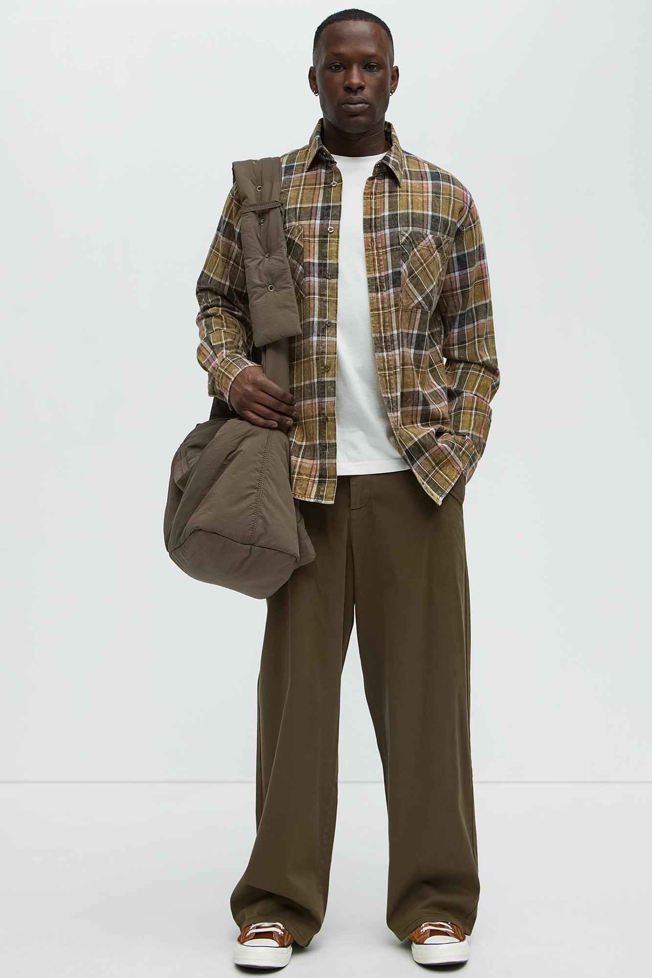 Available In Olive. Baggy Fit Zip Fly Button Closure Side Hand Pockets 98% Cotton, 2% Elastane Imported