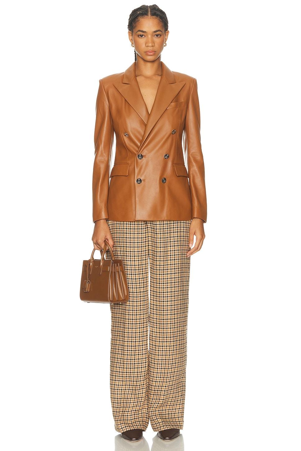 blazerSelf: 100% lamb leatherLining: 95% cupro, 5% elastane / Dry clean only / Front double-breasted button closure / Light padding at shoulders / Side flap pockets / Genuine soft leather / Made in Italy / Our Style No. RALF-WO3 / Manufacturer Style No. 290P01990001 / Model is wearing size 2.