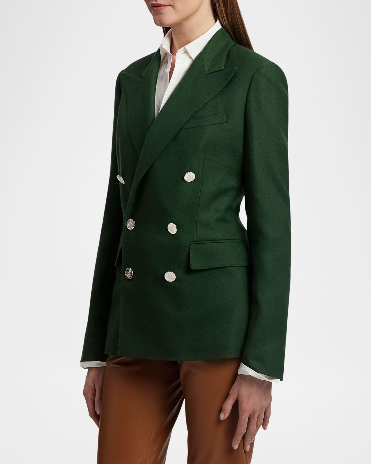 Debuted as a men’s sporting style in 19th-century Britain, the double-breasted jacket is one of Ralph Lauren’s enduring signatures. This version of the iconic Camden is crafted from broken-twill cashmere that’s sourced from an Italian mill and then accented with our signature polished buttons. Ralph Lauren Collection "Camden" jacket featuring signature engraved silvertone buttons Peak lapels; double-breasted front Long sleeves; button cuffs Chest welt pocket Hip flap pockets Slim tailored fit Cashmere Lining: Cupro/elastane Made in Italy