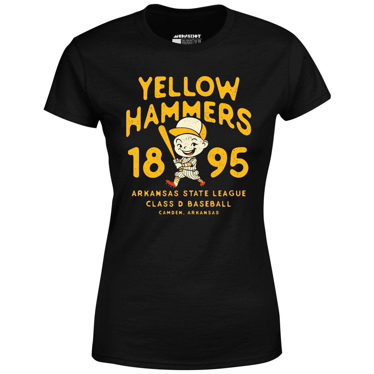 The Camden Yellow Hammers were an old school baseball team based out of Camden, Arkansas. They were established in 1895 and played in the Arkansas State League. This design is part of our old school retro baseball designs inspired by the vintage and now defunct Minor League Baseball teams of yesteryear. Original branding reimagined by m00nshot for the lost baseball teams of yesteryear for which mostly nothing exists. Printed on our super soft 100% ringspun & combed cotton women's T-Shirt. Or upgrade to our Luxury 52/48 cotton/poly vintage heather edition for an even softer classic look. We print & ship all of our high quality graphic tees in the USA.