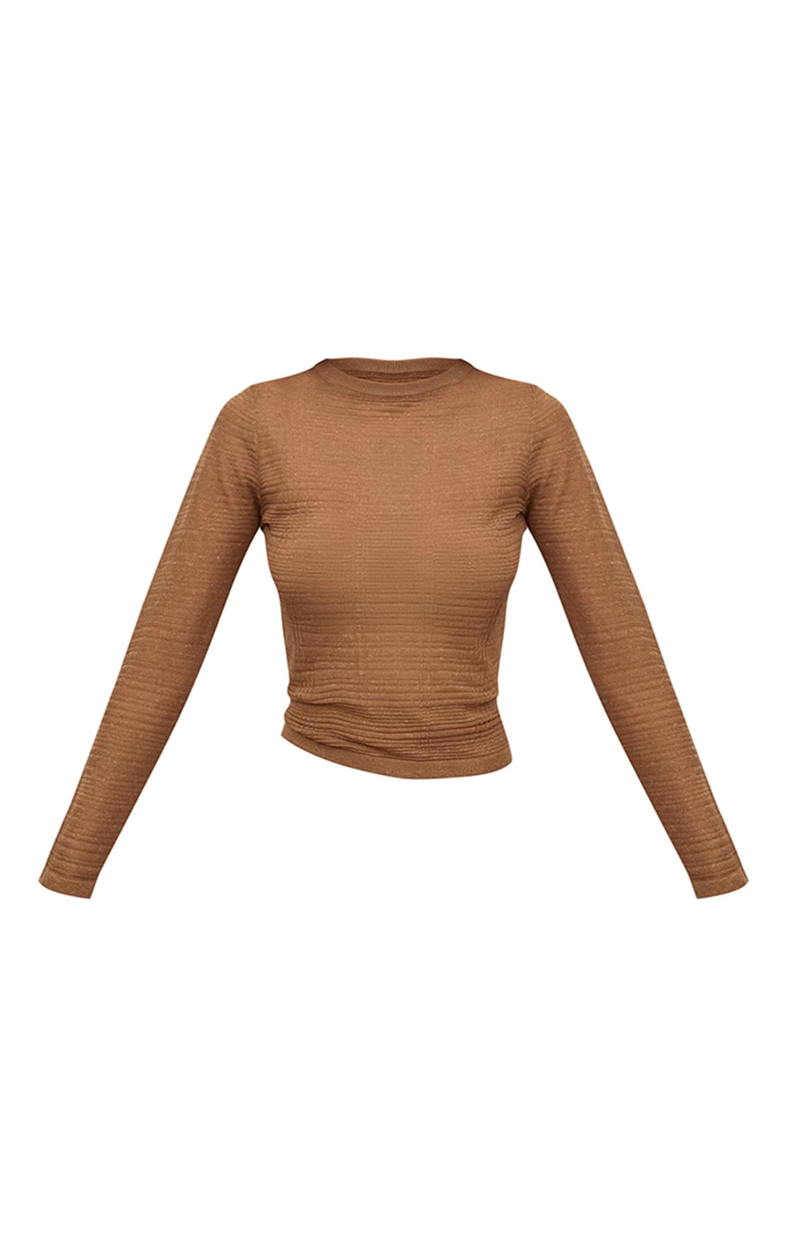 Add texture to your layers with the camel check sheer knit top. Designed in a lightweight sheer knit with a classic camel check pattern, this top offers a fitted silhouette perfect for transitional styling. Team with tailored pants or a maxi skirt and a pair of boot heels for a polished finish.Length approx 48.5cm/19inch (Based on sample size S)Model wears size SModel Height - 5ft 9inchp]:!mb-4inch>Brand: PrettyLittleThingCategory: KnitwearProduct type: T-ShirtColor: CamelMaterial: Fine KnitOccasion: Day