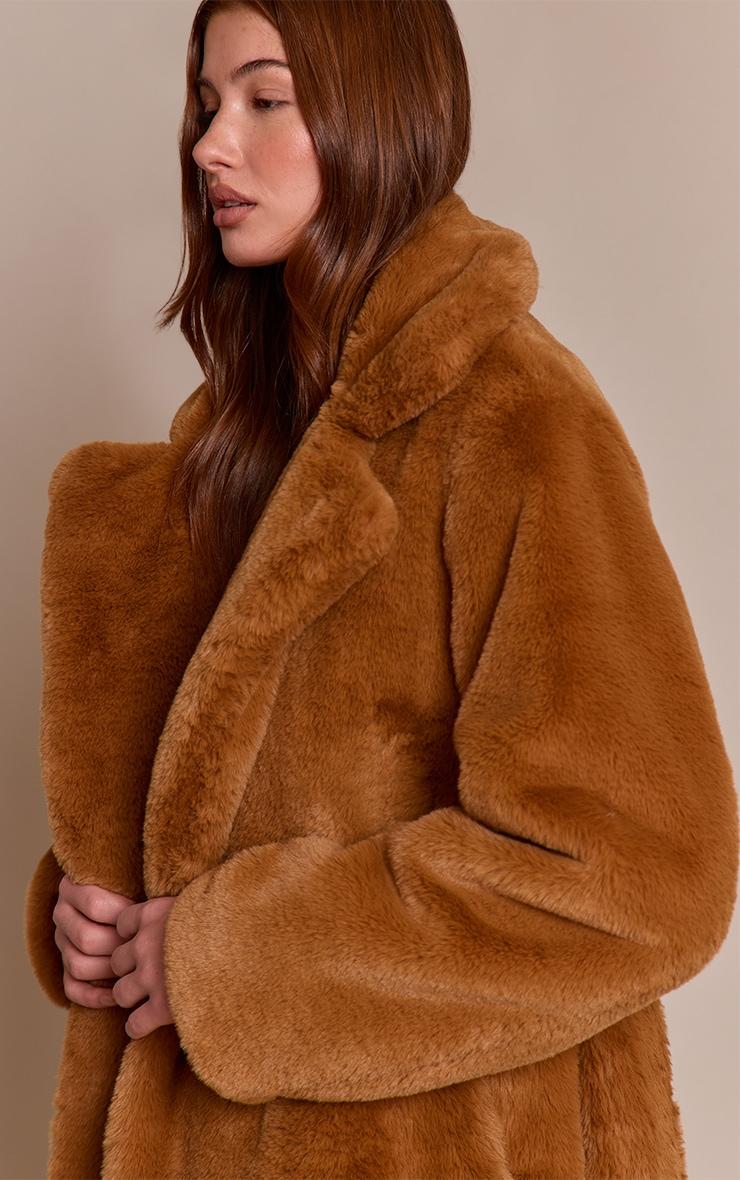 Define your cold-weather aesthetic with the camel faux fur tie waist maxi coat, an essential layer designed to make a confident statement. This sophisticated outerwear piece features an elongated maxi length and broad, structured lapels that frame a commanding silhouette. Designed with a versatile tie waist, it offers the option to cinch for a defined shape or wear open for an effortlessly relaxed fit. Layer it over neutral tailored pants and a simple sweater, then complete the look with sleek black kitten heels and a minimalist black bag for a polished daytime ensemble. It's the definitive outerwear choice that speaks volumes without a single word.Length approx 124.5cm/49inch (Based on sample size S)Model wears size SModel Height - 5ft 9inchp]:!mb-4inch>Category: OuterwearProduct type: Faux FurColor: CamelMaterial: Faux FurOccasion: Day