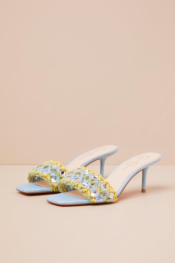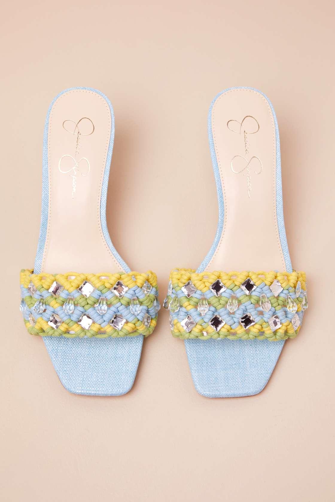 The Jessica Simpson Cameleah Chambre Lizard Macramé High Heel Slide Sandals were made to be the perfect plus one for any tropical getaway! These ultra-fun slide sandals feature a square footbed and woven macramé cords that create a wide toe strap, embellished with shiny clear teardrop beads and diamond-shaped rhinestones. A stiletto heel lends a sultry finish.