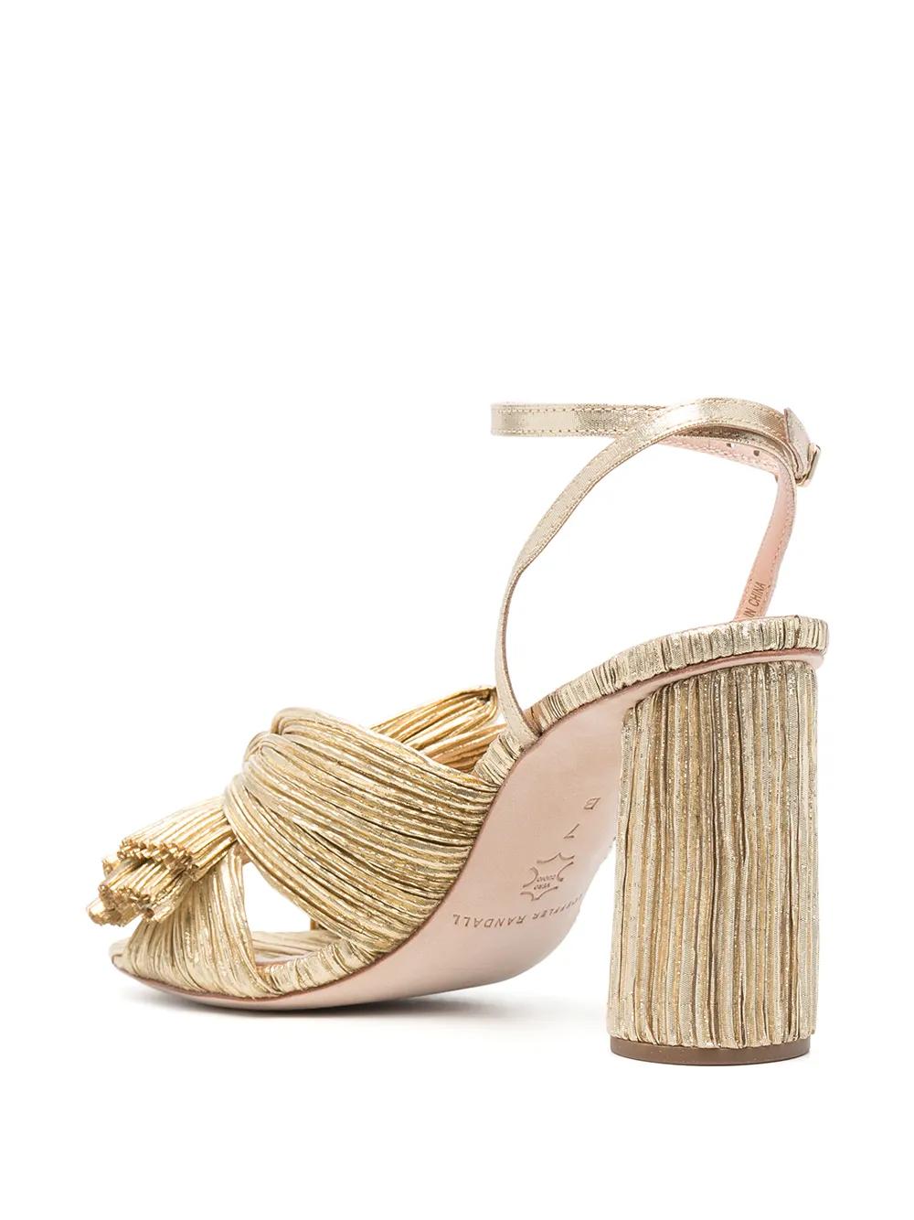 Loeffler Randall Camellia pleated leather sandals | Gold | Leather/Leather/Polyester | Heeled Sandals | Sandals | Shoes | Women
