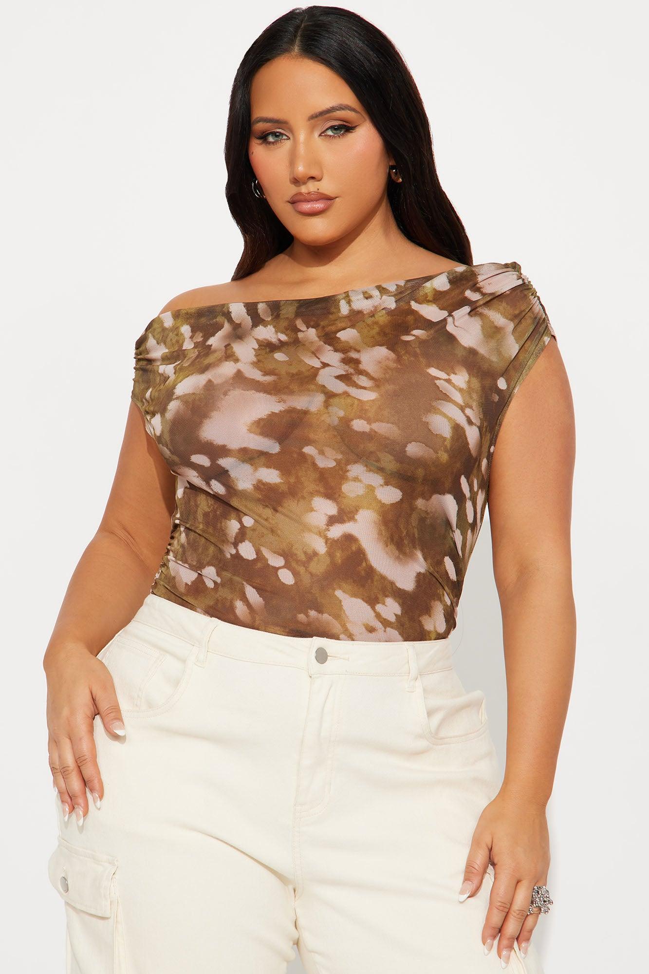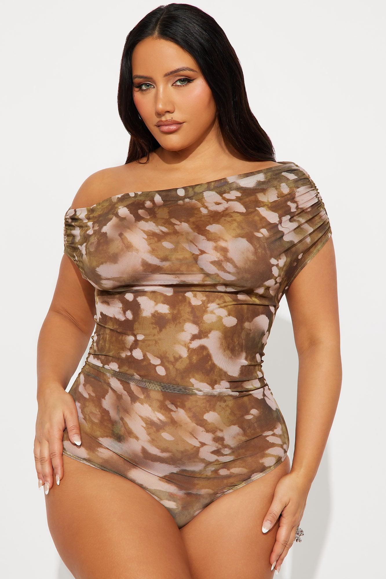 Cameron Ruched Mesh Off Shoulder Bodysuit - Green/combo Female