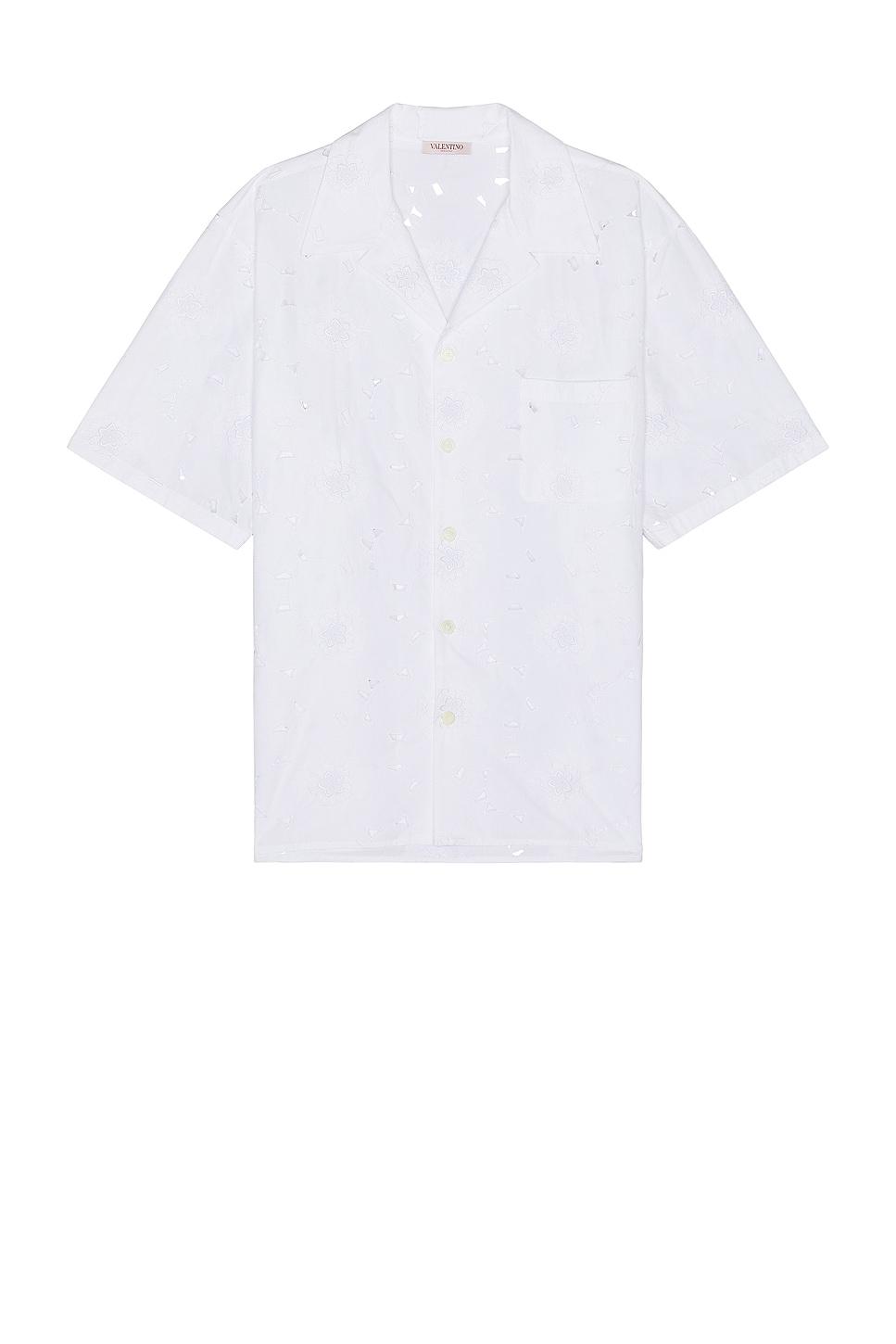top96% cotton, 4% polyester / Made in Italy / Dry clean only / Front button closure / Chest slip pocket / Eyelet fabric with floral design / Our Style No. VTIF-MS56 / Manufacturer Style No. 4V3AAA90A0J / Model is wearing size 48.