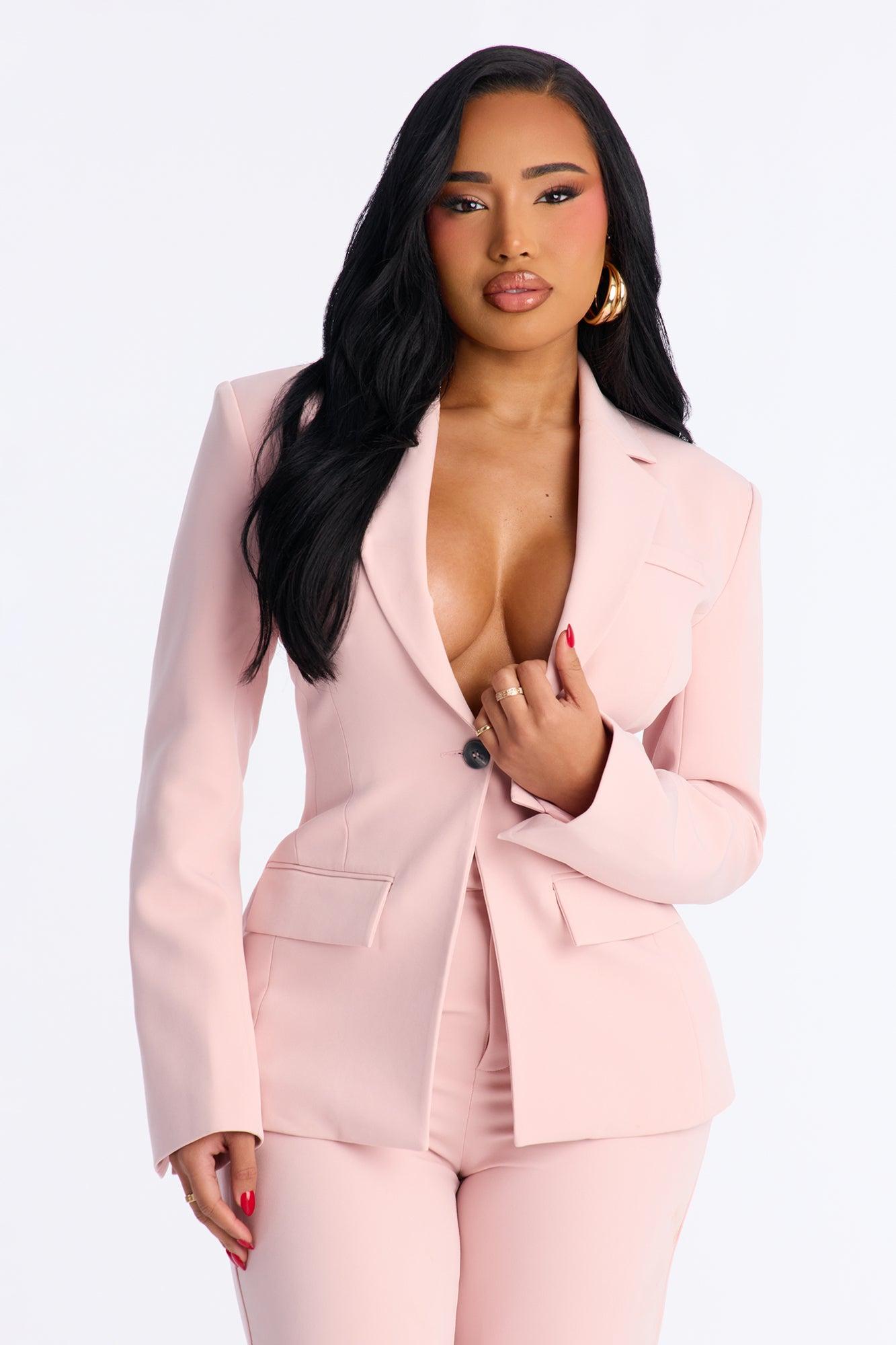 Camille Cinched Waist Blazer Pant Set - Pink Female