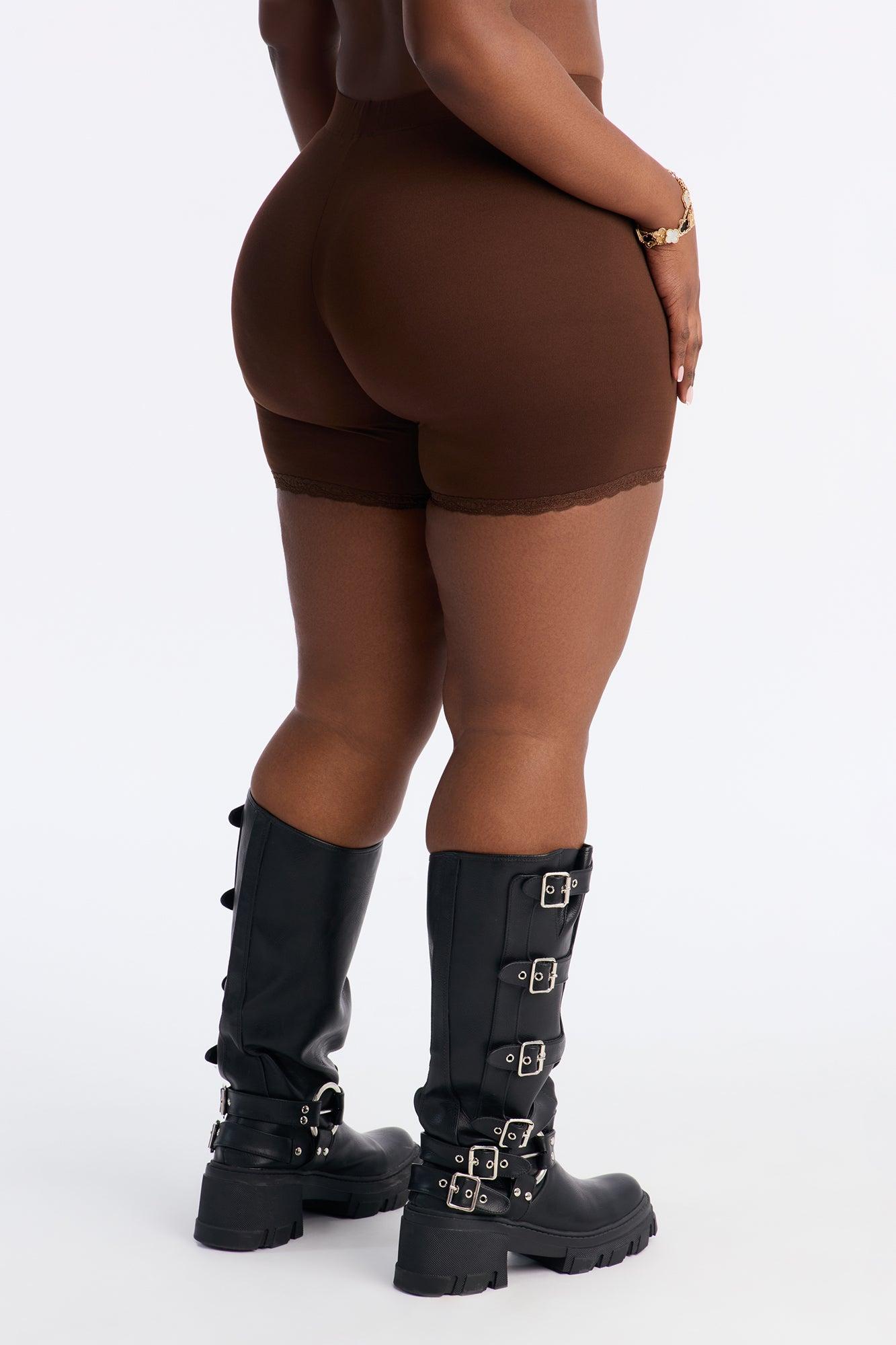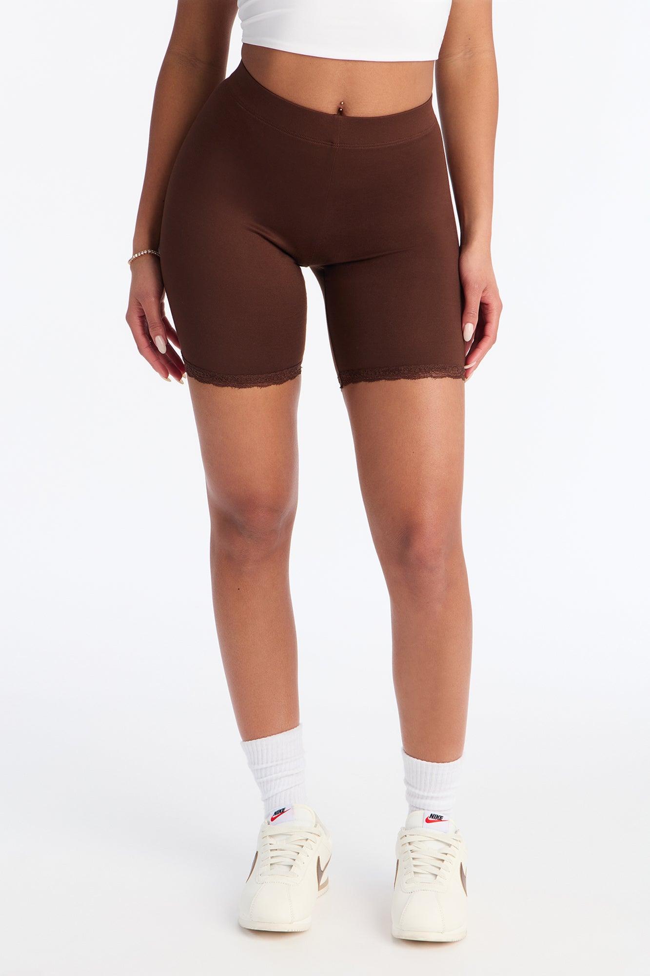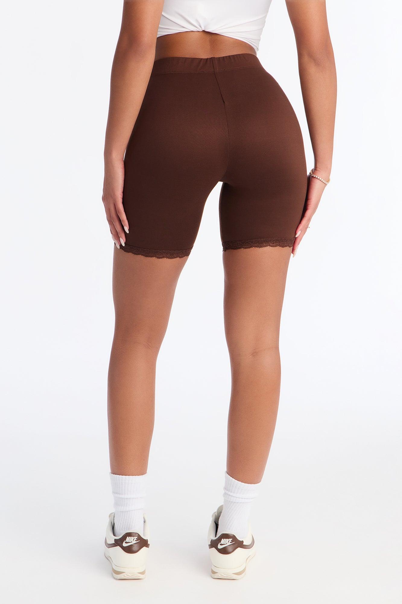 Camille Lace Trim Biker Short - Chocolate Female