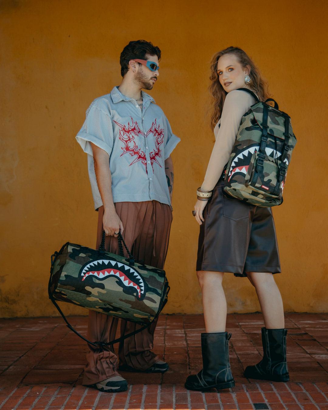 [split] PRODUCT DETAILS Delicate gold chain straps Gold metal hardware Dimensions: 20" x 10" x 10.75" • Metal zipper pocket• Back Zippers •Zippered sneaker pocket • gold zippers • Adjustable Straps for custom sizing •Metal Zippers with Metal Hardware Fabric Durable Vegan Leather water-resistant fabric