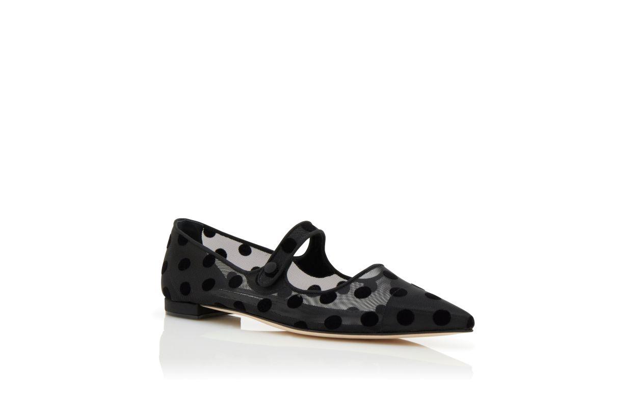 CAMPARIFLATMESH Black Mesh Polka Dot Mary Jane Flat Pumps