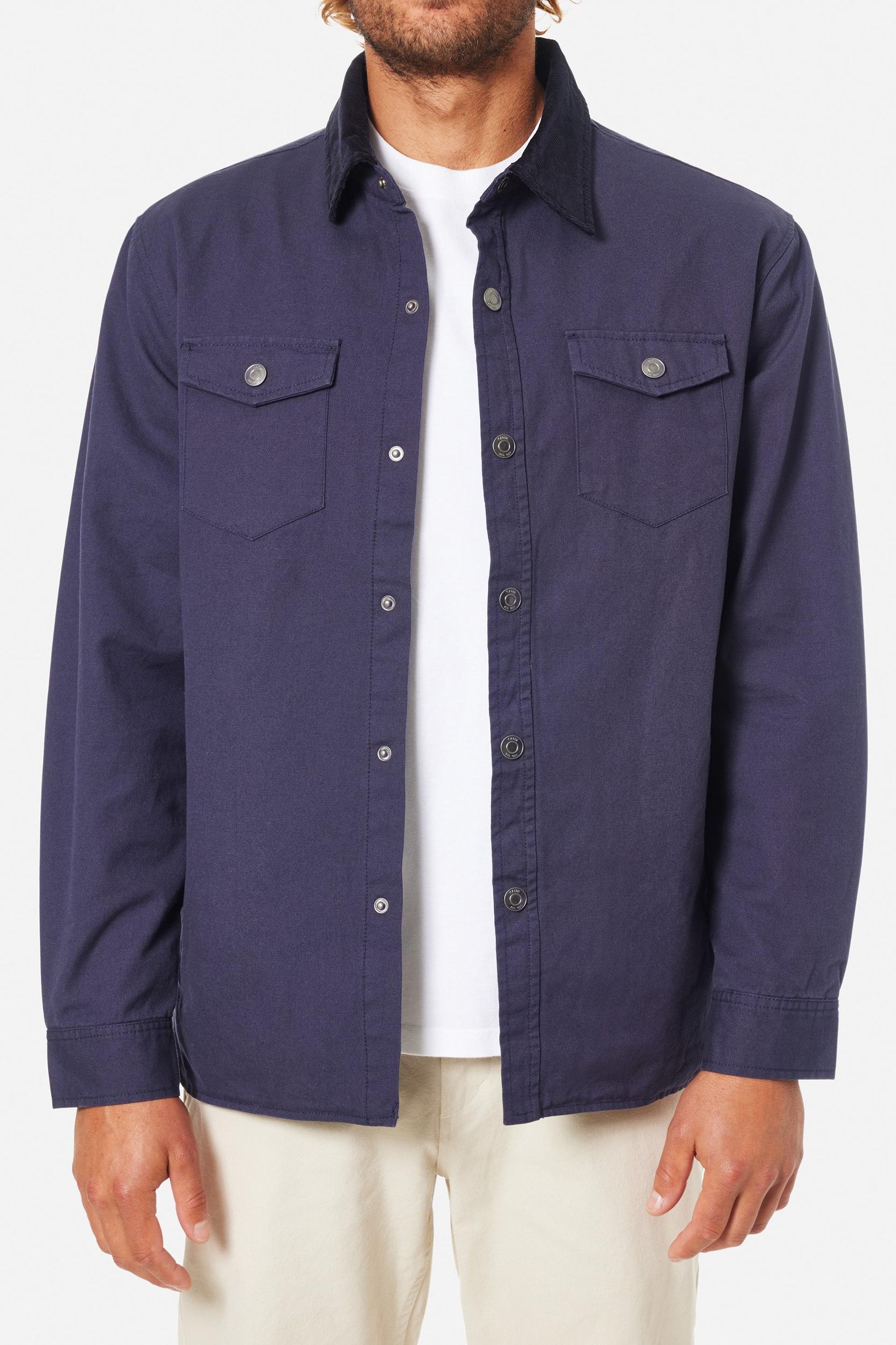 The Campbell Shirt Jacket is made from 100% cotton canvas and features a custom flannel body liner, snap front closure, poly sleeve liner, corduroy collar, front welt pockets, and patch chest pockets.
