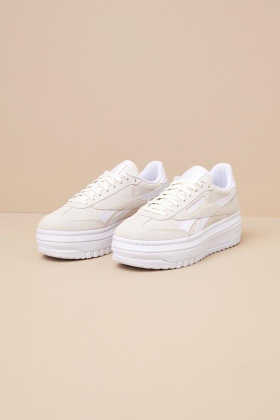 These platform Reebok sneakers are the cutest street-style upgrade, with their perfectly chunky heel and sporty silhouette. Genuine suede leather shapes a classic round upper and a lace-up vamp with a low-cut collar. An iconic striped design accents the instep and outstep, while logo tags at the tongue, outstep, and heel complete the look.
