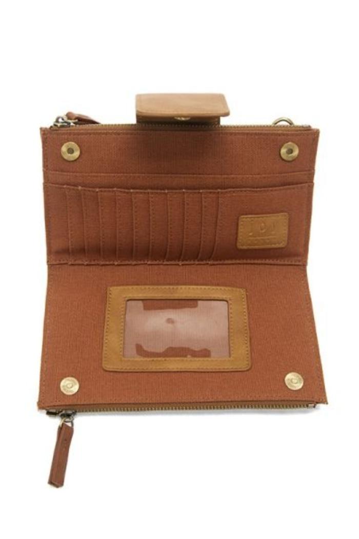 A colorful color block design adds visual intrigue to a well-organized wallet that’s big enough to serve as a sleek clutch that fits most phones. With multiple credit card pockets, slide bill fold pockets and zipper pockets all in fun color combinations that combine vegan leather with a washed canvas lining. Add the included adjustable and removable crossbody strap and you are ready for your next hands-free adventure.