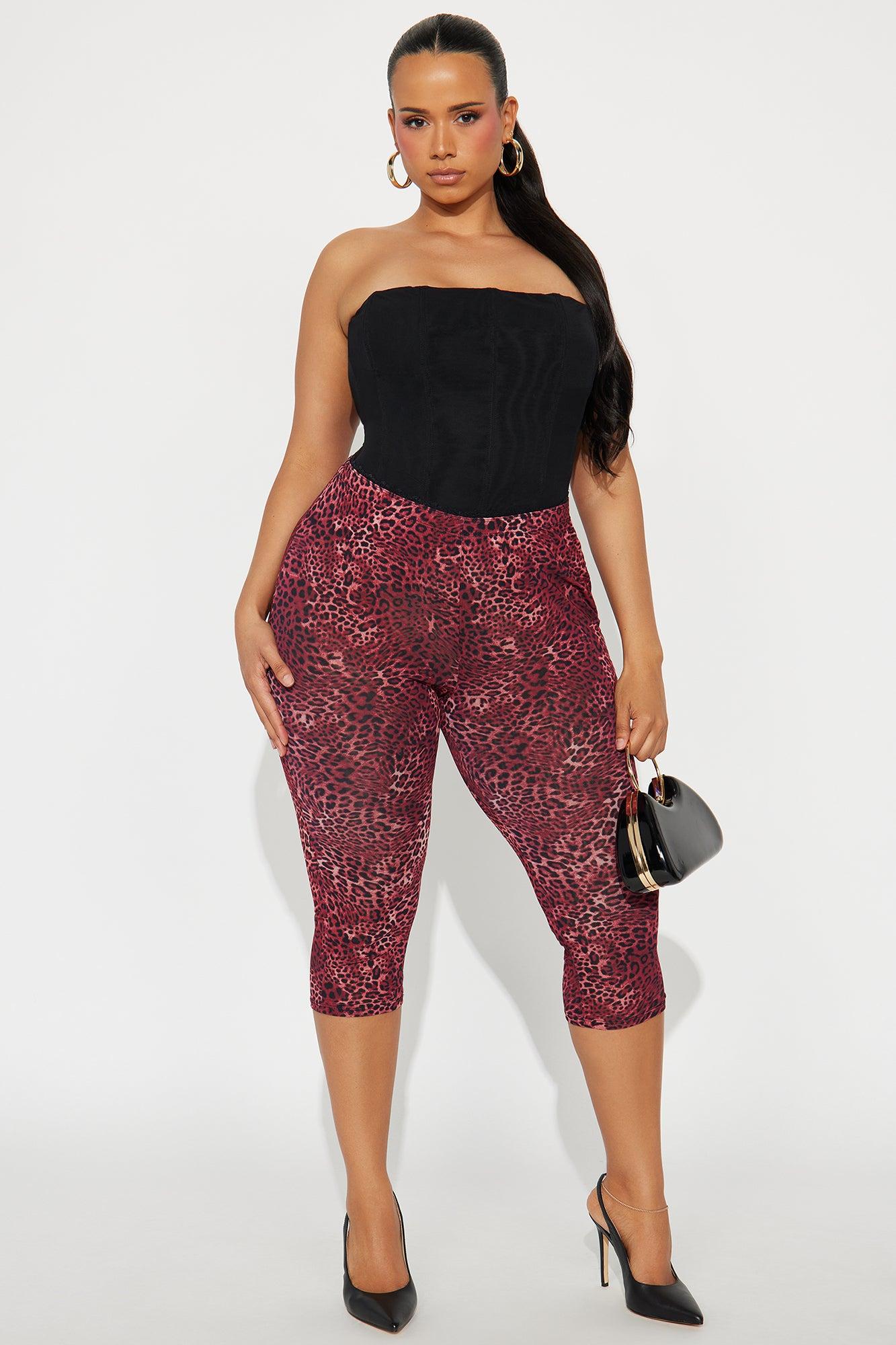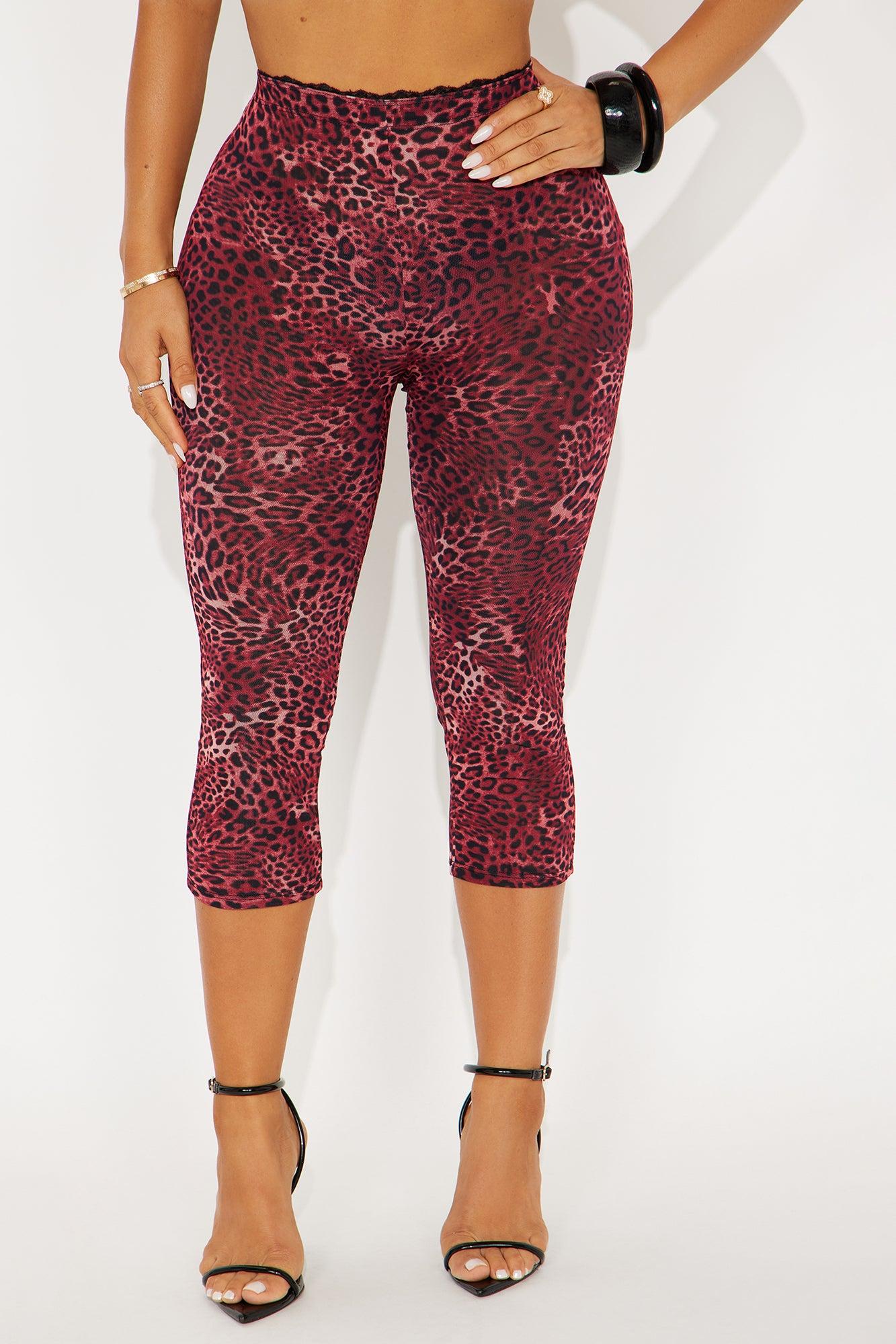 Available In Leopard. Double Mesh Leopard Capri Legging Stretch Cropped 19" Length High Rise Elastic Waistband Lace Trim Disclaimer: Print Placement May Vary Self: 95% Polyester 5% Spandex Lining: 95% Polyester 5% Spandex Imported California Proposition 65WARNING: Cancer and Reproductive Harm - www.P65Warnings.ca.gov.