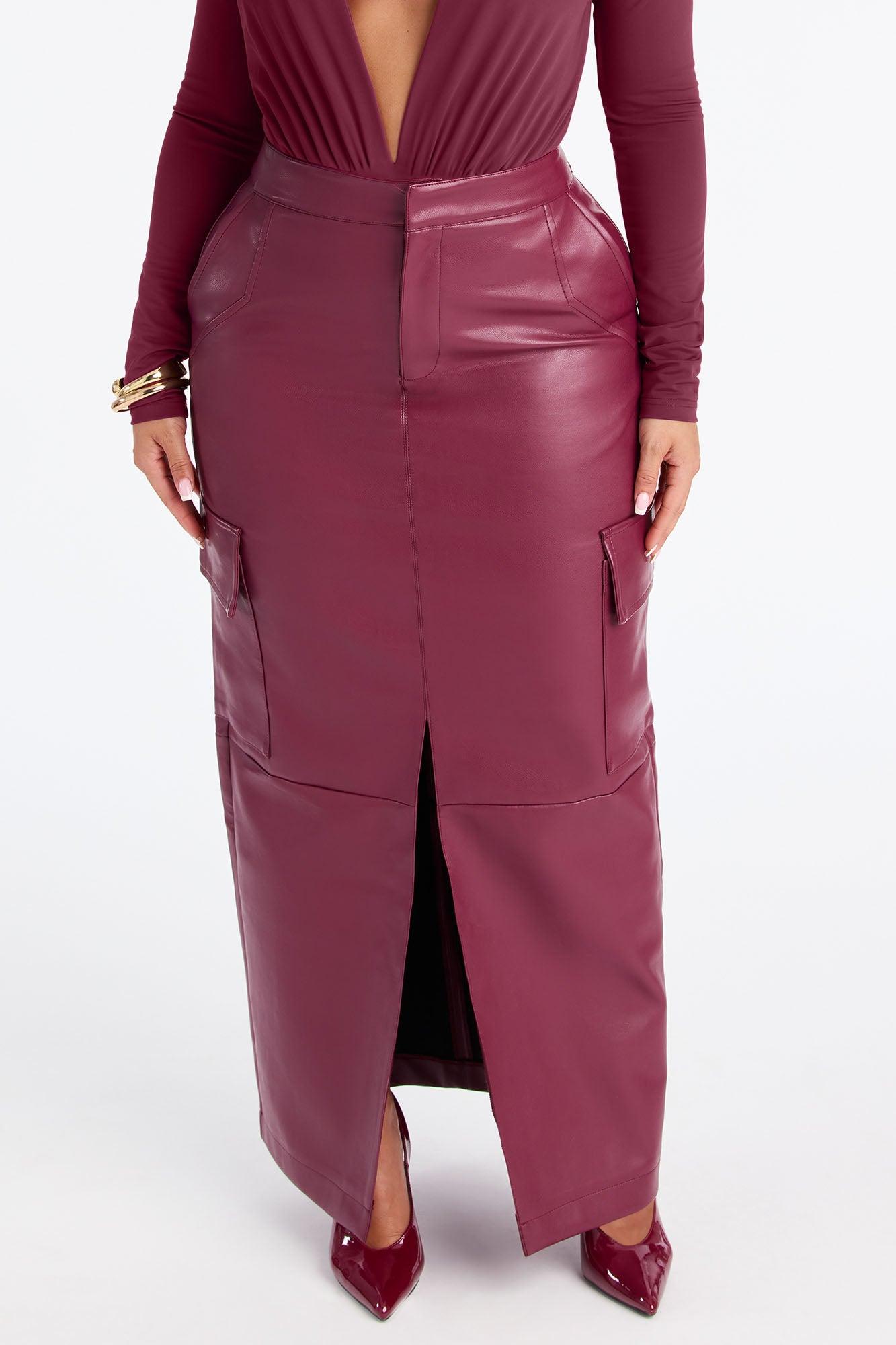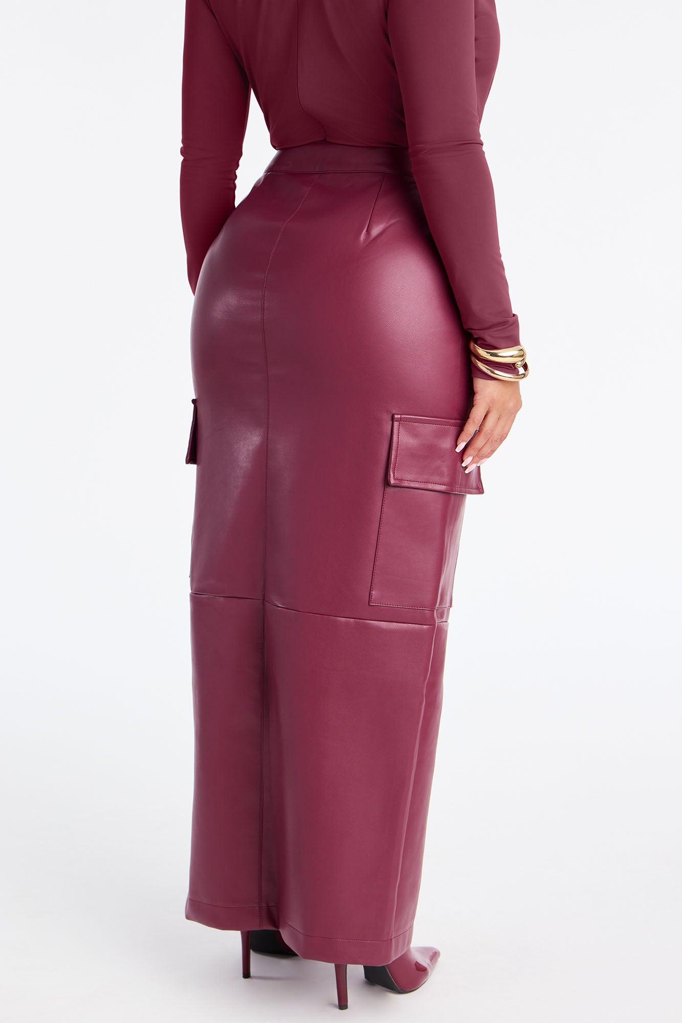 Can't Compare Faux Leather Cargo Maxi Skirt - Wine Female
