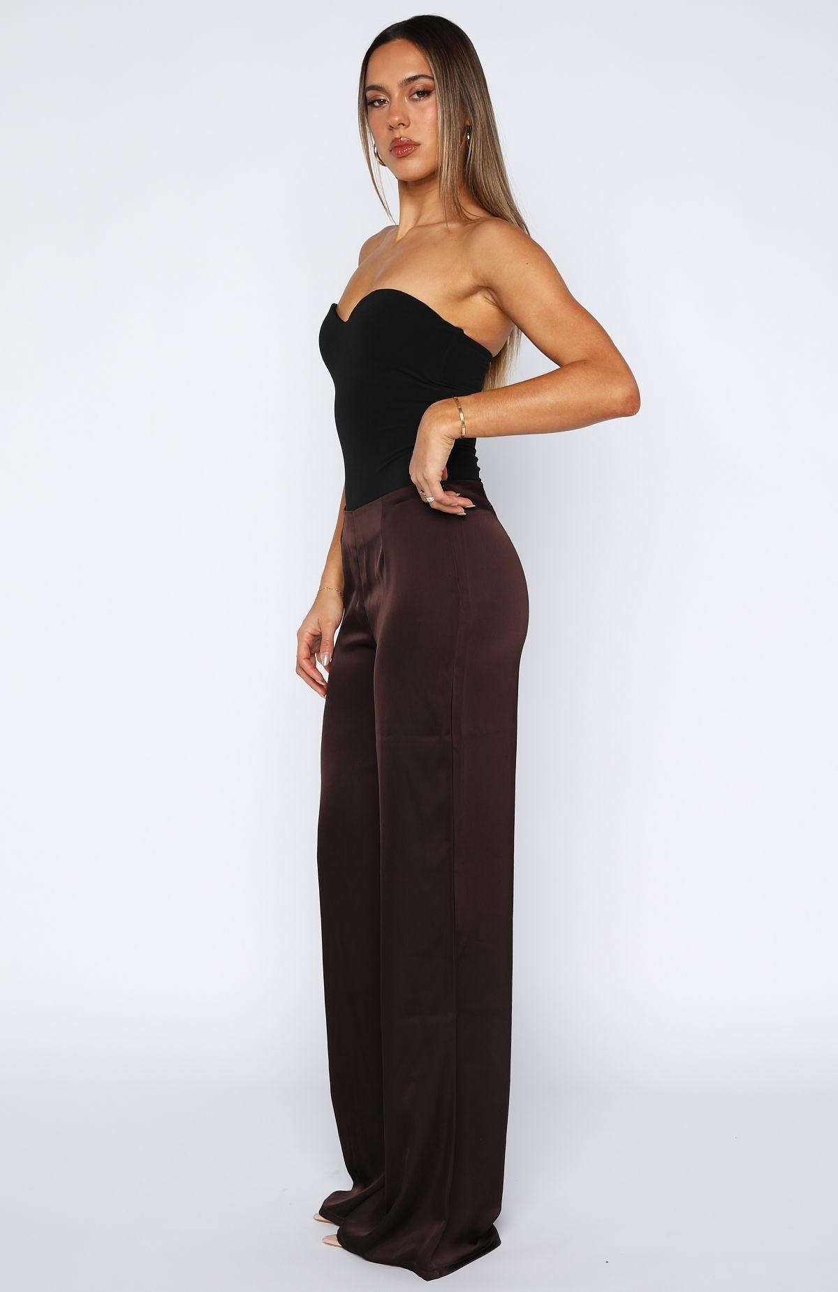 Make summer time dressing simple in the Can't Let Go Pant in Chocolate! Features a flattering fitted waistband, wide leg design for movement and an invisible zipper with hook and eye closure. Pair with a basic tee and sandals for a cute strolling around town fit! 100% Polyester Mik is 171cm & wears a S