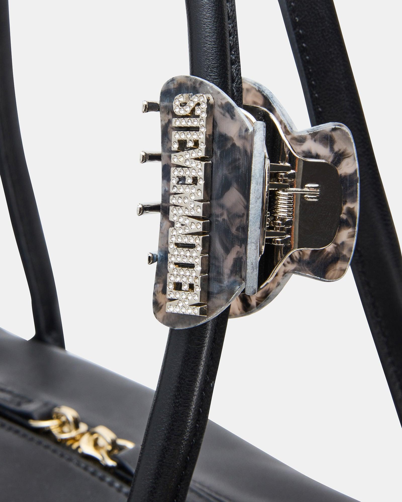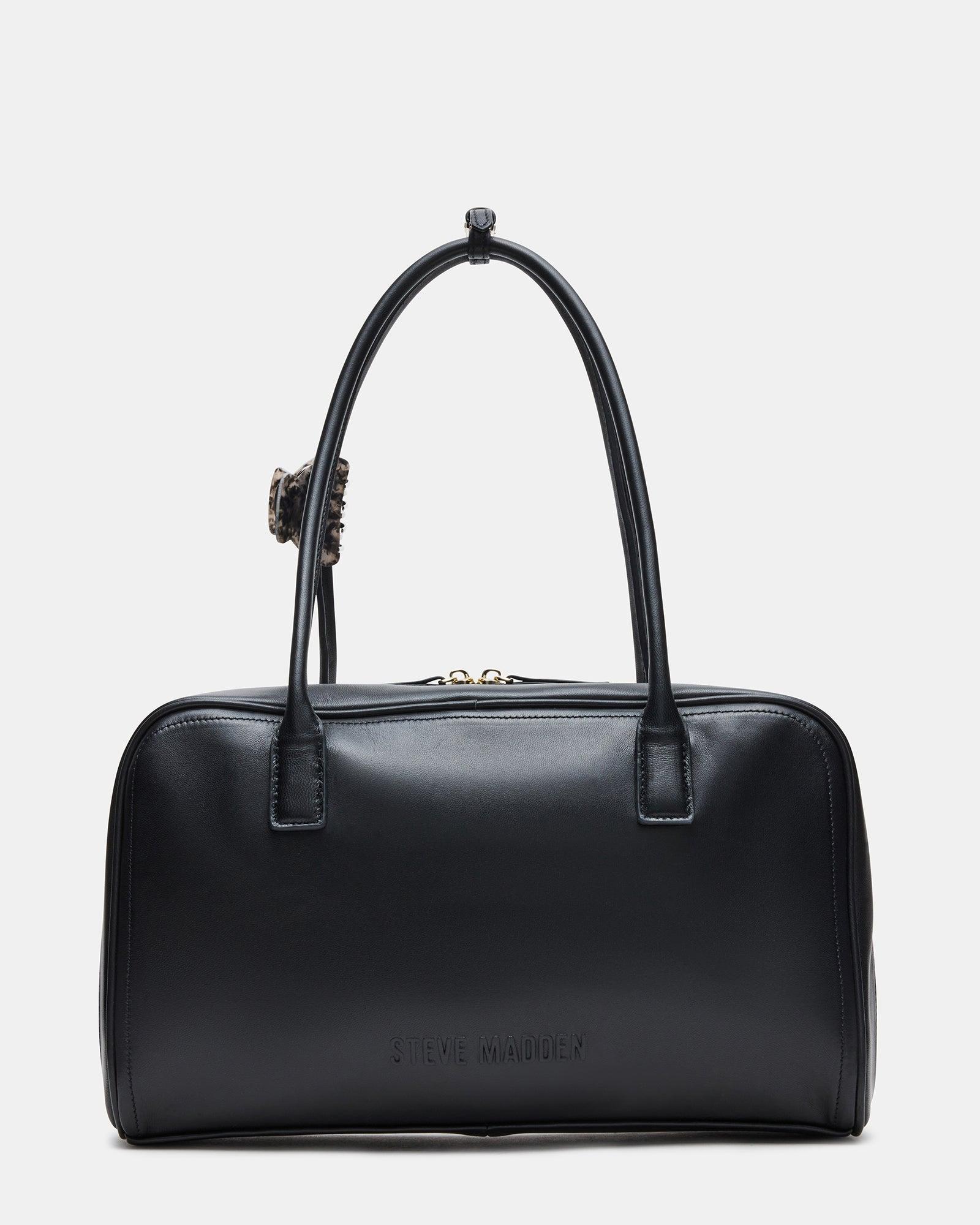 The CANDICE bag is a sophisticated box satchel designed for versatile wear with its tubular shoulder straps and an attachable rhinestone embellished hair clip for added elegance. Featuring a secure zipper closure, it offers organized storage with an interior pouch on the back wall and gussets that expand for extra capacity, making it both stylish and practical for everyday use. Shoulder bag Tubular straps Attachable rhinestone embellished hair clip Interior pouch back wall Fits more than the essentials, including a phone, a full-size wallet, headphones, a makeup pouch, and sunglasses Shoulder strap: 9 inches 8in H x 13.5in W x 4.5in D Leather materials Duster bag included Imported