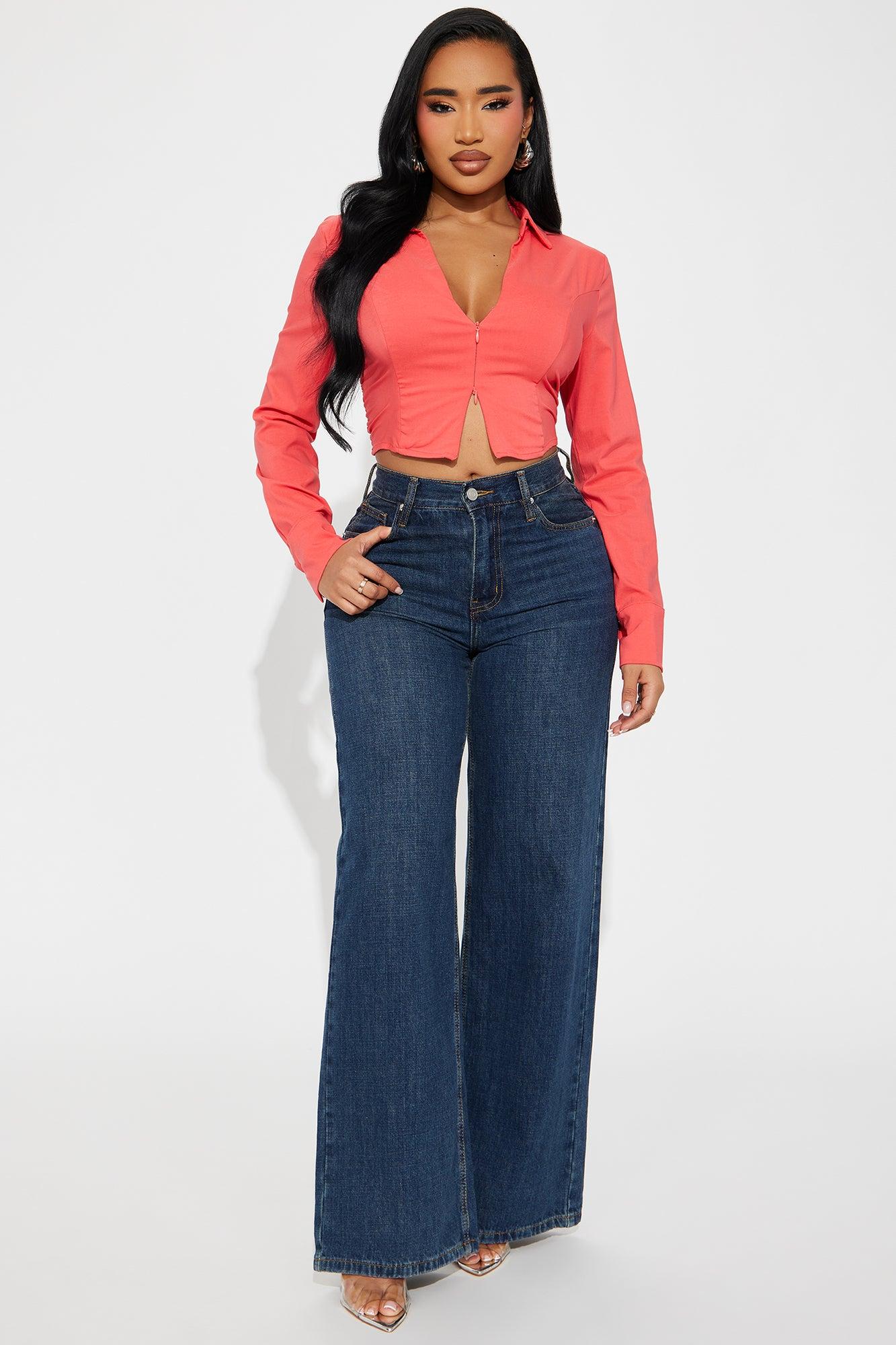 Candice Front Zip Top - Tomato Red