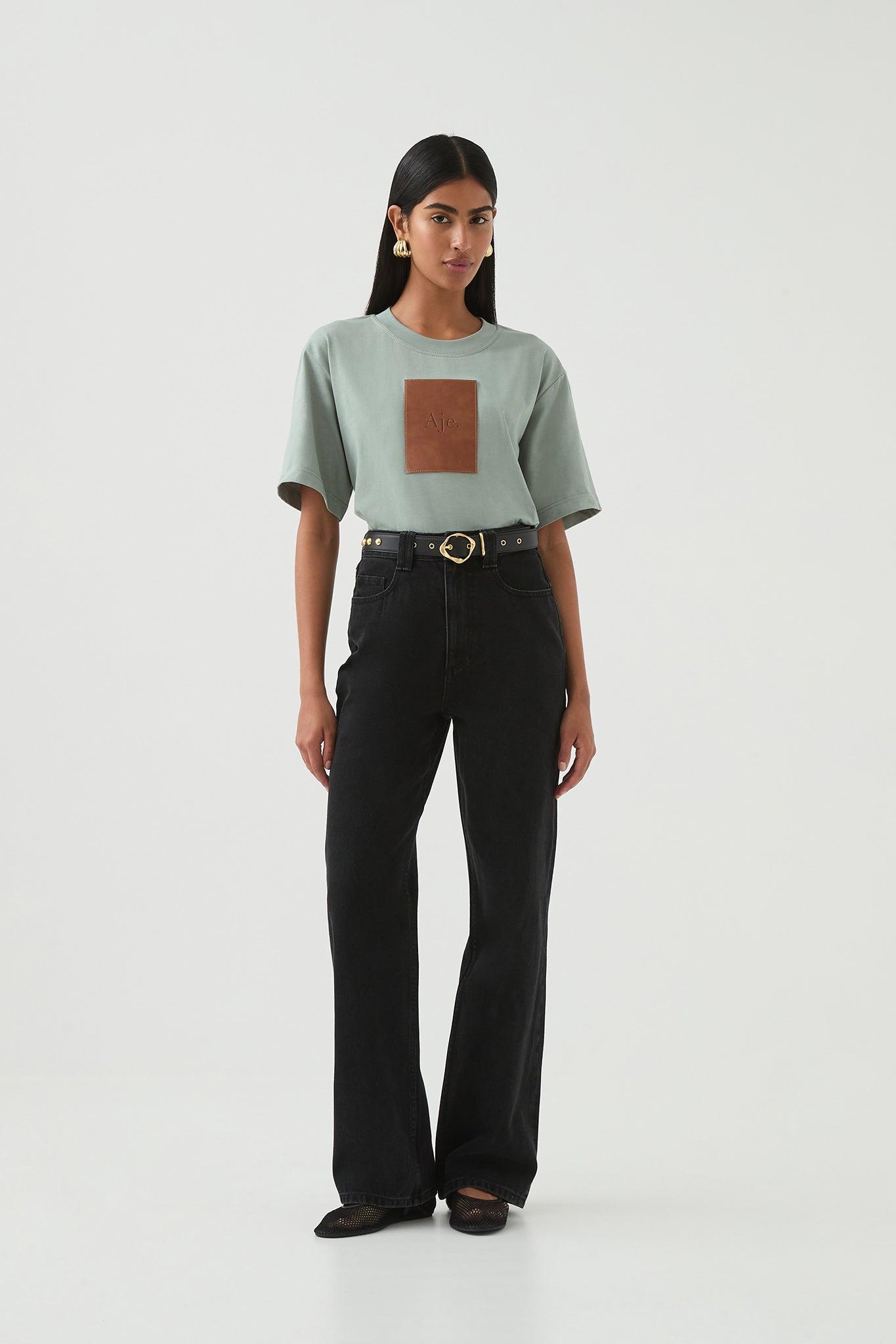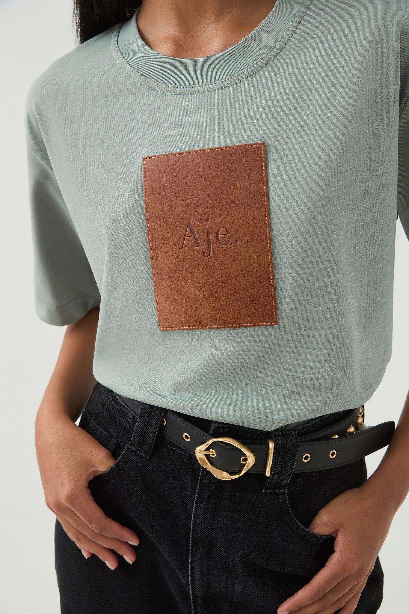 PRODUCT DETAILS Women's tee Oversized fit Large vegan leather patch detail Ribbed neckline 100% Organic Cotton Delicate Cold Hand Wash Shop All Tees SIZE AND FI...