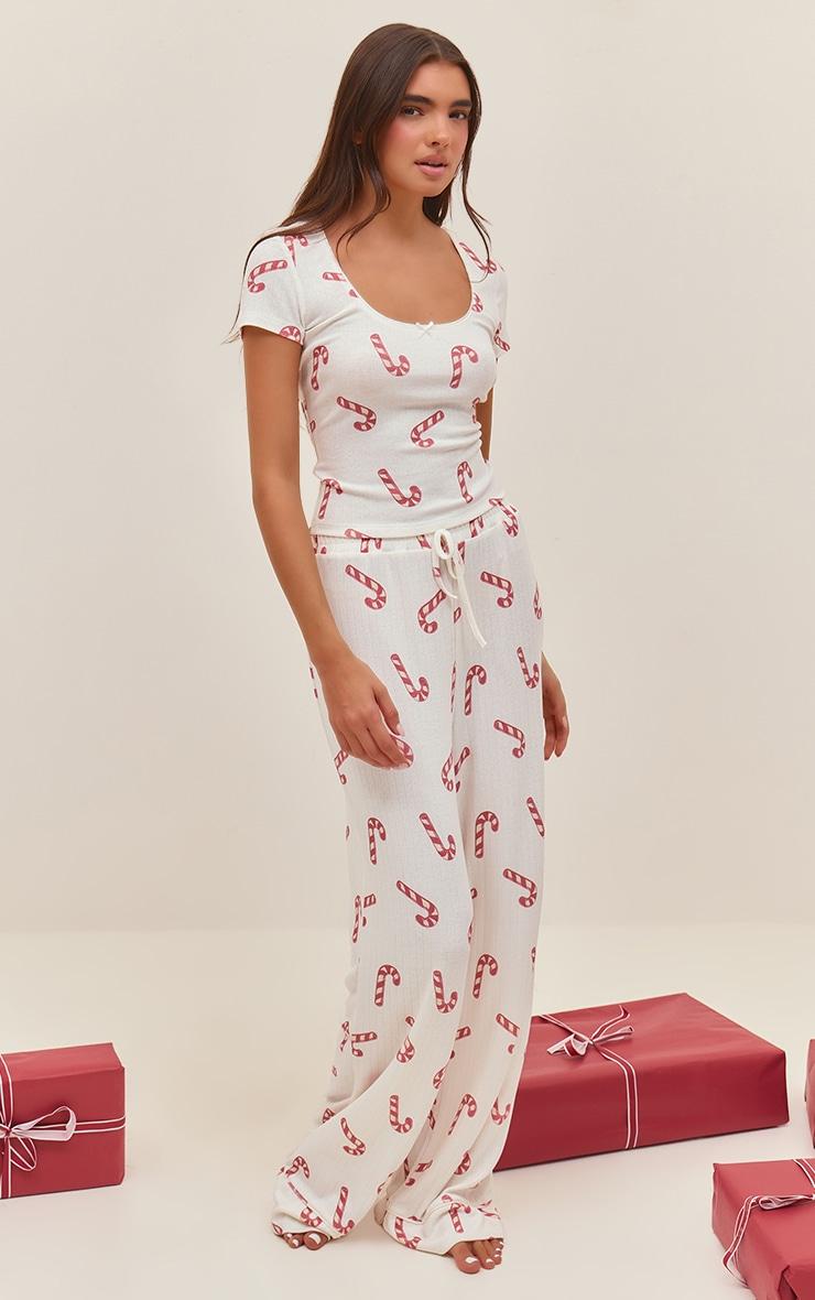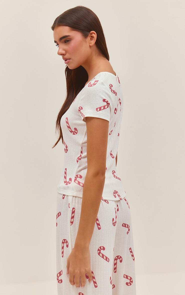 Your festive loungewear just got an upgrade with this candy cane print cap sleeve pointelle pajama top. Brought to you in candy cane patterned material, this top has capped sleeves and a pointelle finish. Pair it with the matching bottoms for the ultimate cosy look this season.Length approx 48.5cm/19inch (Based on sample size S)Model wears size SModel Height - 5ft 7inchp]:!mb-4inch>Brand: PrettyLittleThingCategory: Lingerie & NightwearProduct type: T-ShirtColor: RedMaterial: Cotton JerseyOccasion: Day