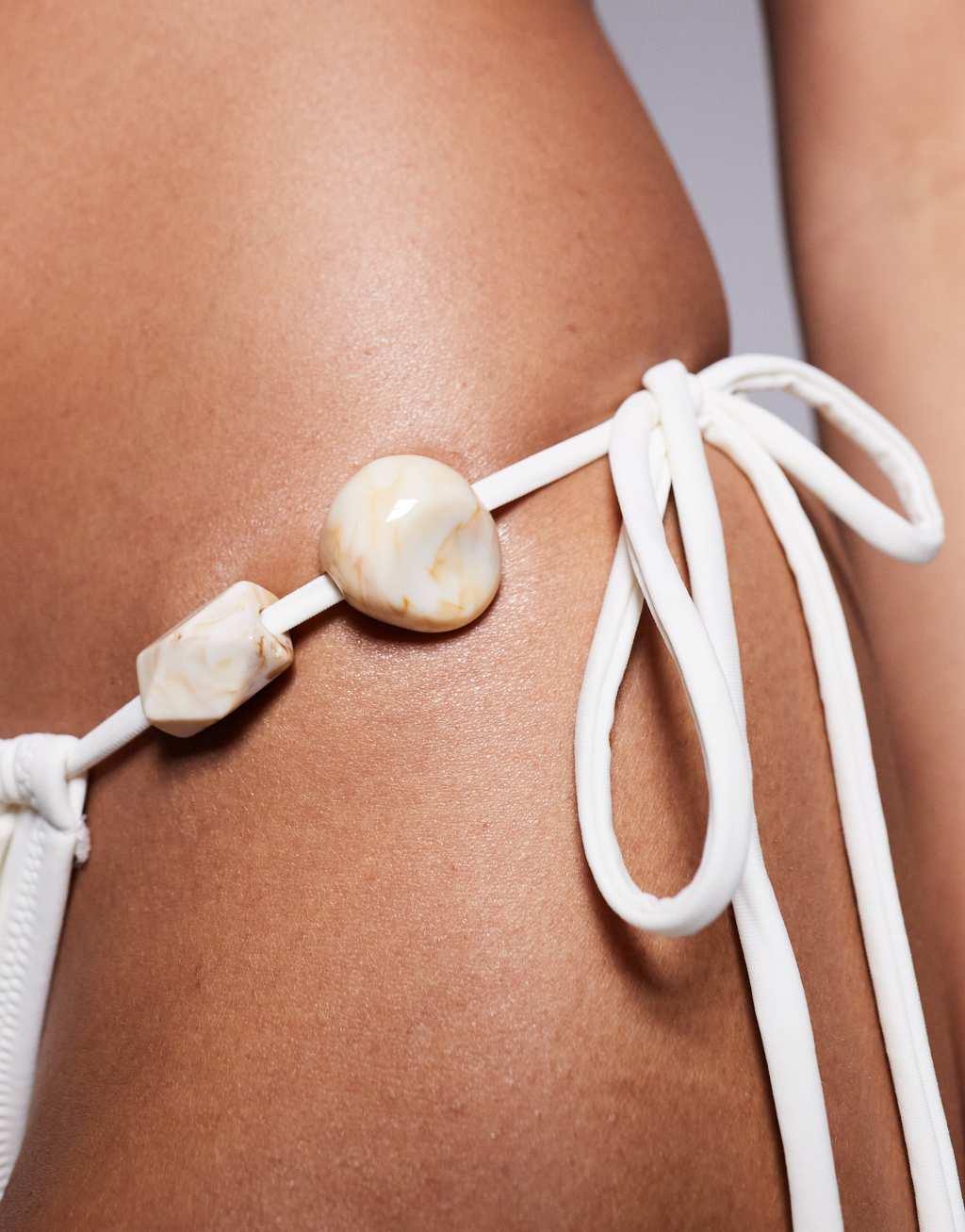 Candypants beaded tie side bikini bottom in coconut