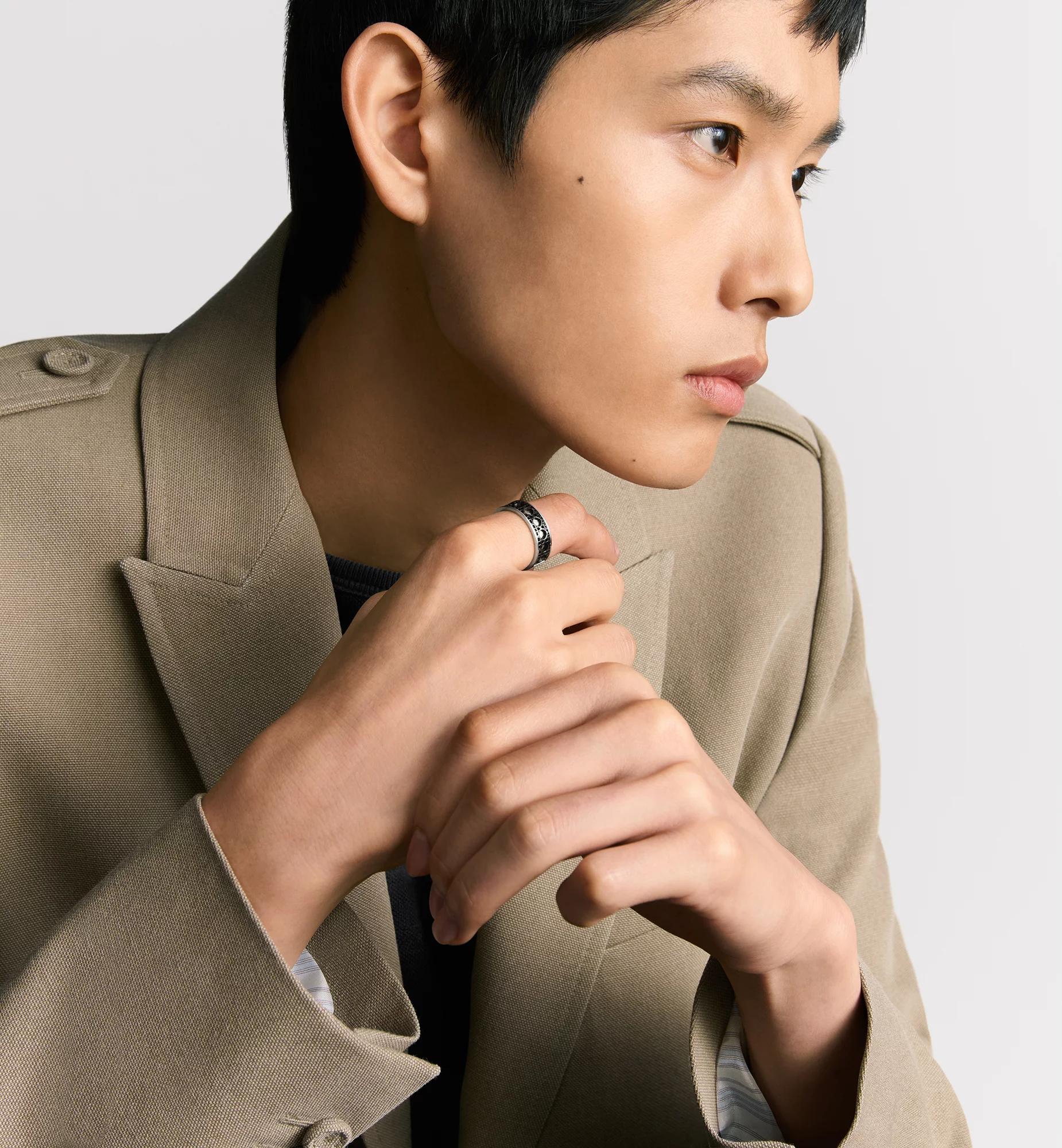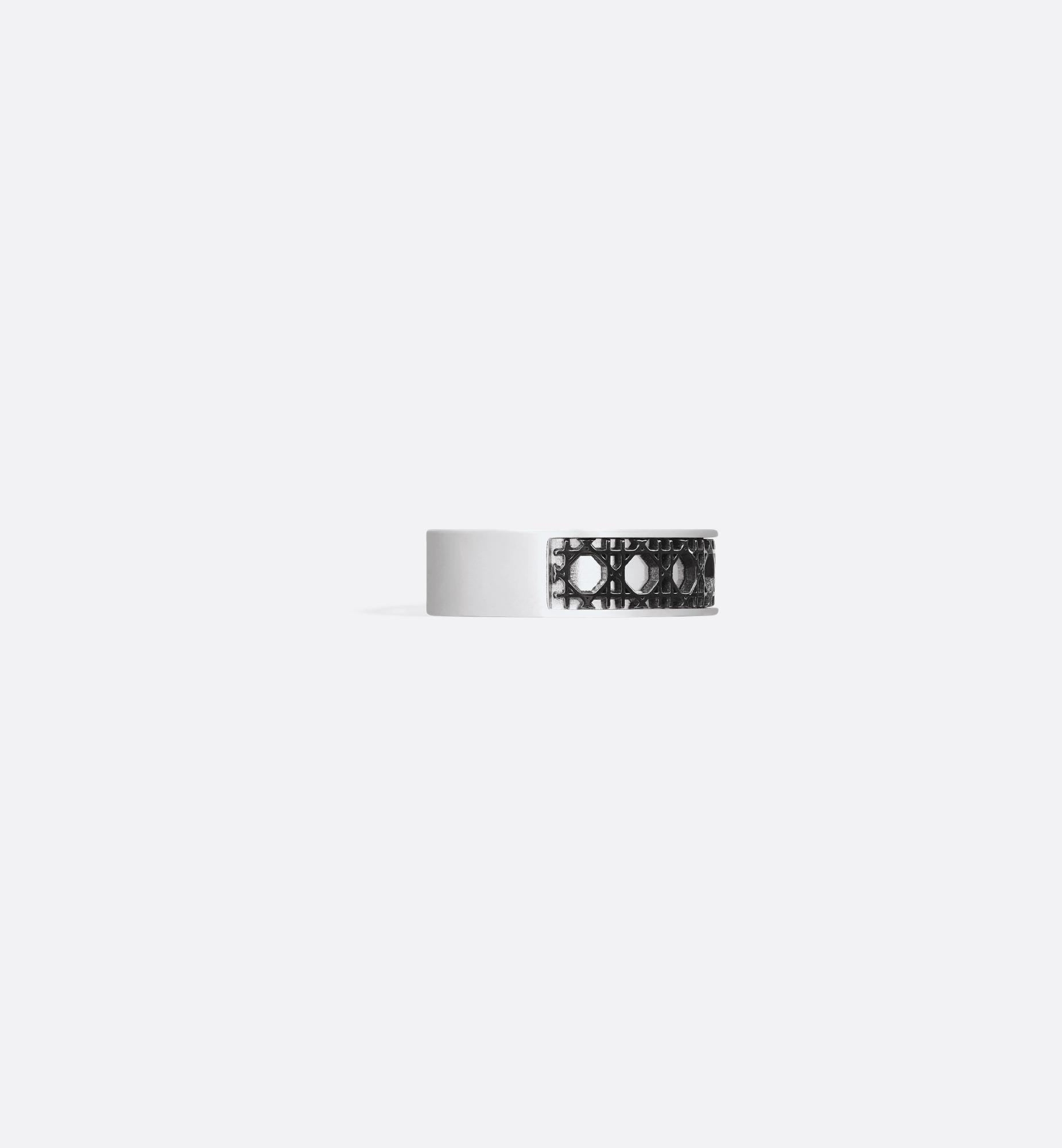 New for Fall 2025, the ring is a distinctive creation. The silver design is contrasted by a Cannage motif in ruthenium-finish silver, while the openwork CD Icon signature is featured on the base. The ring can be teamed with other Cannage creations to complete the look. Cannage motif. Openwork CD Icon signature on the base. Engraved Dior signature on the interior. 100% sterling silver. Made in Germany