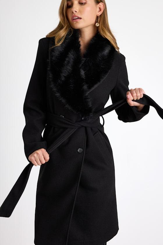A seriously chic winter is in store for you when you stock your closet with this sensational coat, crafted from a wool-like construction for a toasty-warm feel. A fabulous faux fur collar sits atop the double-breasted bodice, complete with functional buttons and a sash belt that cinches the waist. Long sleeves frame the longline silhouette, completing the must-have design.