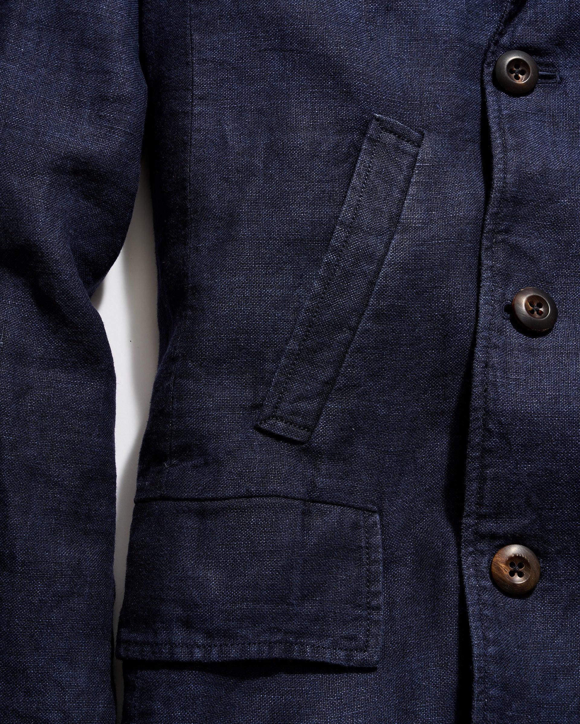 Our iconic Bond is our best-selling coat ever and is so beloved that Billy wanted to remake it, but softer and lighter. It’s the first Bond to be 100% lined in a custom yarn-dyed stripe cotton liner for a luxurious look and feel. The weight is artfully light and ready for warmer temperatures thanks to its linen fabric
