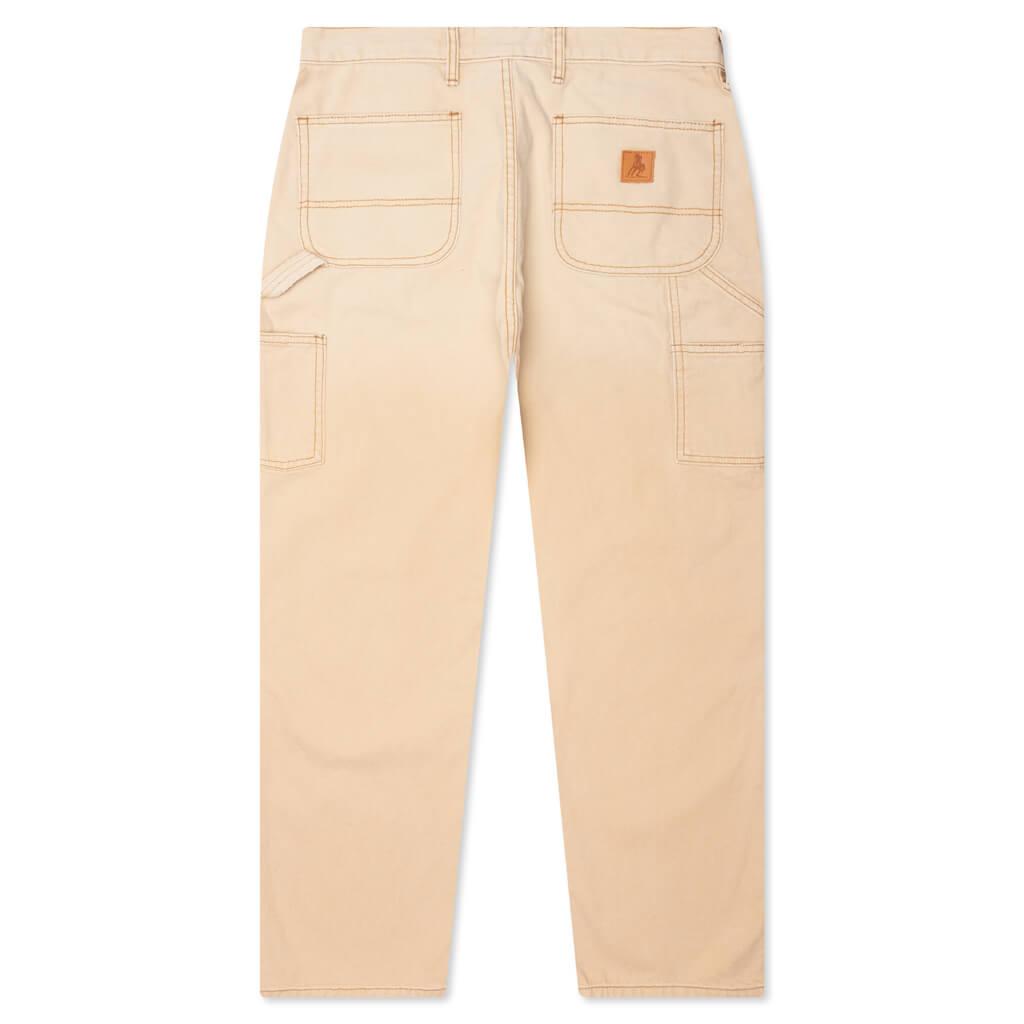 The Canvas Painters Pant in Tan is constructed from durable cotton 12oz duck fabric, ensuring long-lasting wear. These pants feature triple needle stitching throughout for added strength, along with a hammer loop and tool pockets for functionality. The straight leg fit is complemented by slanted side pockets for easy access, a zip fly, and reinforced belt loops. Heavyweight twill pocket bags and a leather horse back pocket patch provide additional durability and style, making these pants perfect for both work and casual wear. 100% cotton 12oz duck Triple needle stitching all over Hammer loop/ Tool pockets Straight leg fit Slanted side pockets for easy access Zip fly Reinforced Belt Loops Heavyweight twill pocket bags Leather Horse Back Pocket Patch Style No: 02B-04-007-TAN