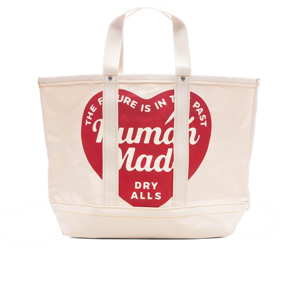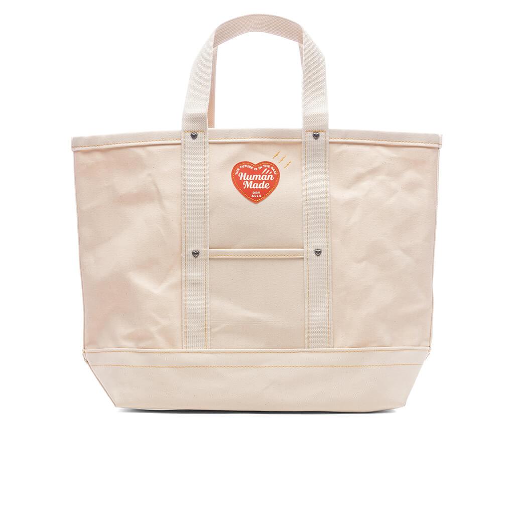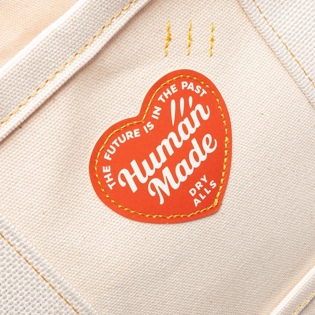 Perfect for any collection, the Canvas Tote Large from Human Made is functional yet elevated. Composed of canvas, the tote features heart-shaped metal rivets and dual handles. An inner pocket is adorned with a woven label, while the screen-printed branding and imagery at the front complete the remainder of the design. 100% Cotton Dual handles Inner pocket Woven label Screen-printed graphics Style No: HM29GD004-WHT HM29GD004 WHIT