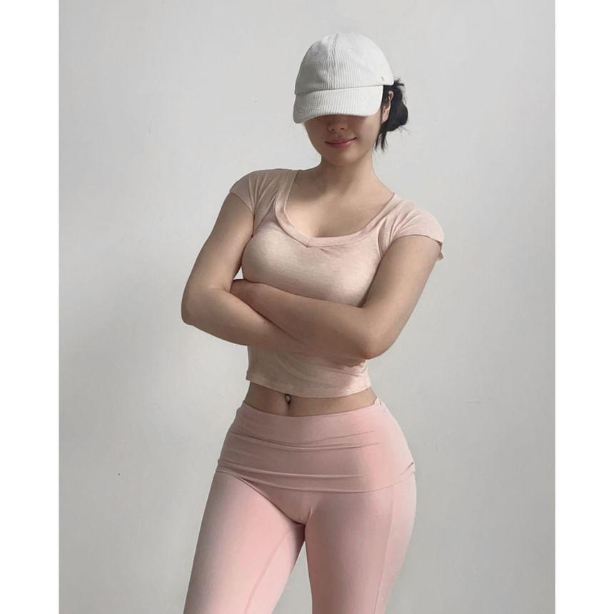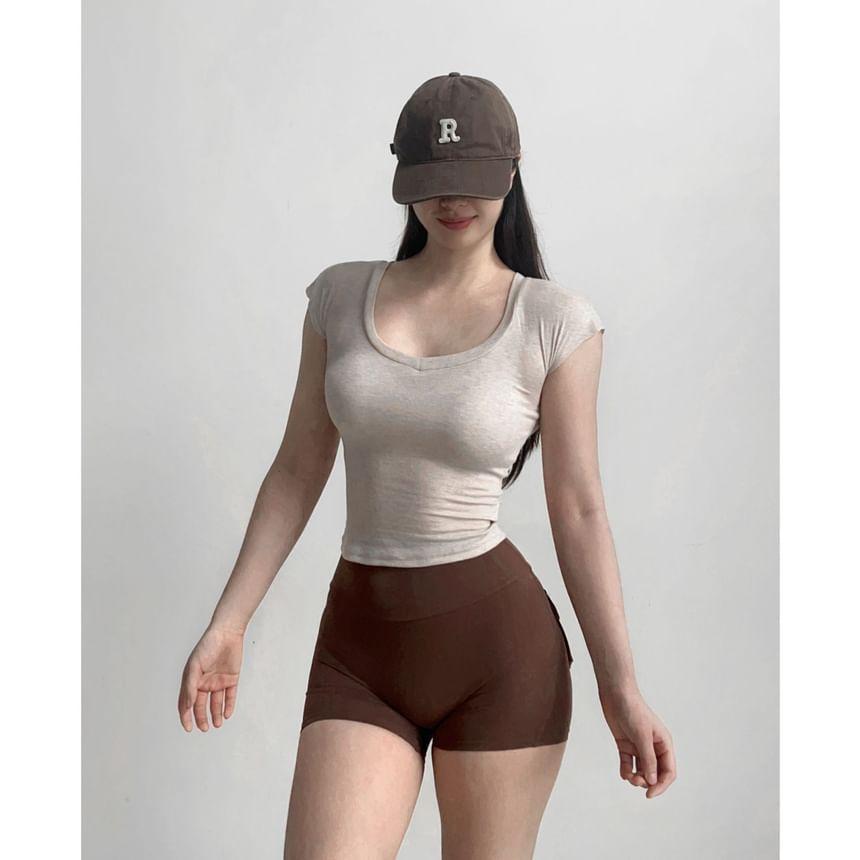 Buy Arigne Cap-Sleeve Scoop Neck Melange Crop Slim Fit Sports T-Shirt at YesStyle.com! Quality products at remarkable prices. FREE Worldwide Shipping available!