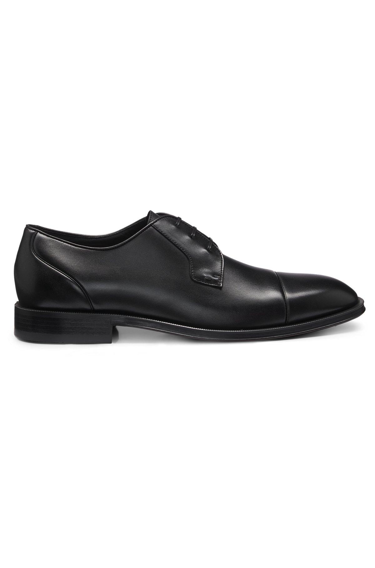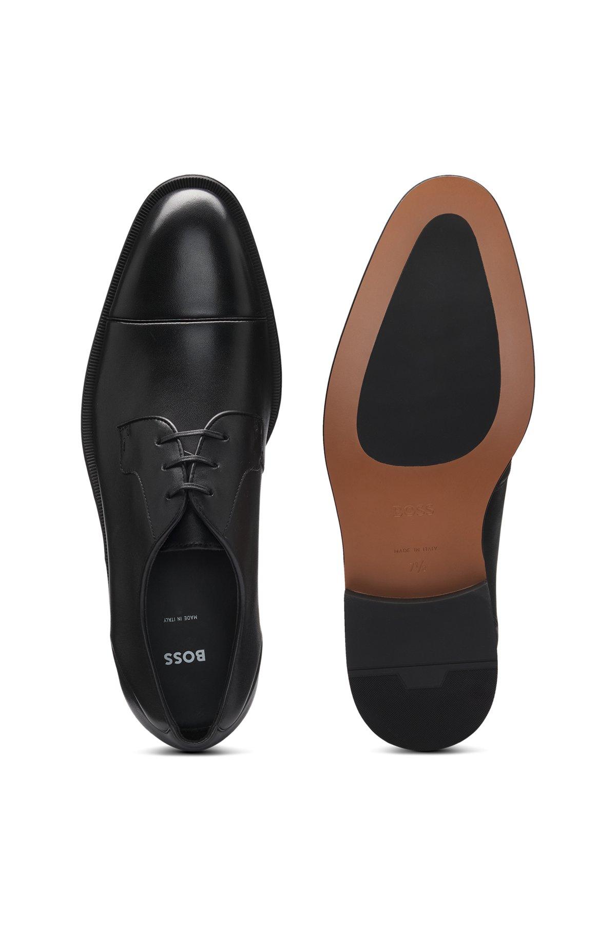 Made in Italy, BOSS Menswear's Derby shoes round off a formal look nicely. Smooth leather uppers, classic cap toe, anti-slip outsole.