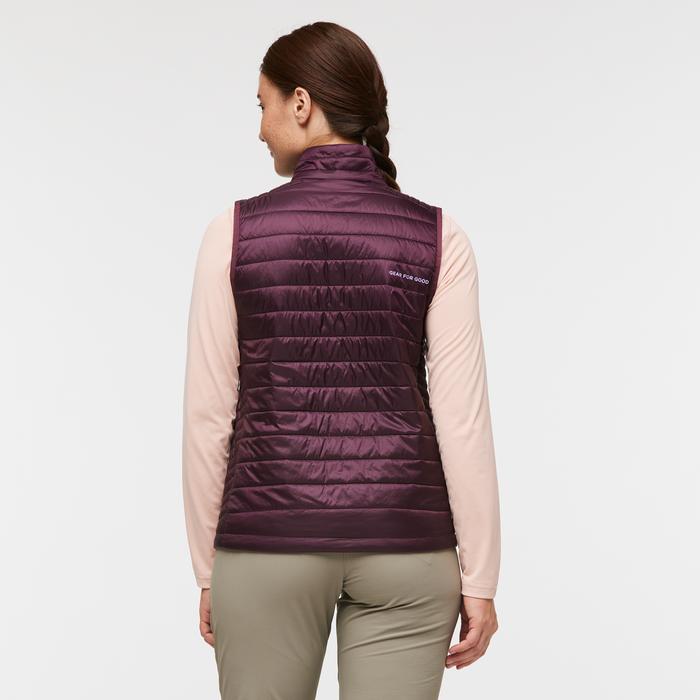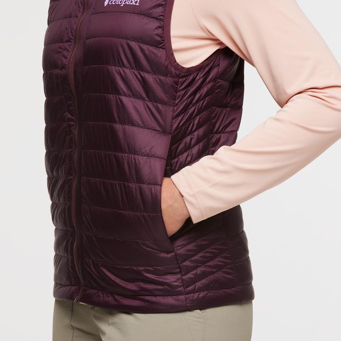 From winter wandering to fall hiking, the versatile Capa Vest is here for it all. Made with Primaloft® Gold P.U.R.E. (Produced Using Reduced Emissions) 100% recycled synthetic insulation, this vest retains warmth even when wet. To keep you really comfortable in weather, it also features a windproof and water-resistant recycled nylon shell. Packable, breathable, warm, the Capa is great for layering when the temps drop.trail, townchillysynthetic, eitherFrom winter wandering to fall hiking, the versatile Capa Vest is here for it allPackable, breathable, warm, the Capa is great for layering when the temps dropDescriptionA recycled performance layer for chillier adventuresHow it fitsSlim FitFeaturesRecycled PrimaLoft® Gold P.U.R.E. InsulationClassic Cotopaxi colorblockingElastic binding at armholes2 zippered hand pocketsWater-resistant yet breathable shellMaterialsShell: 100% recycled polyester (215gsm)Woven overlay/chest pocket: 85% nylon, 15% spandex (148gsm)
