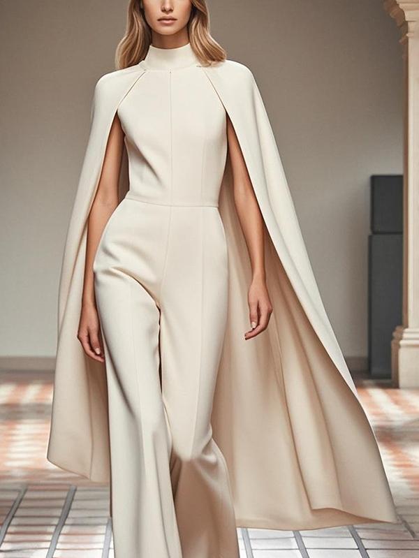 Cape High Waisted Solid Color Mock Neck Jumpsuits