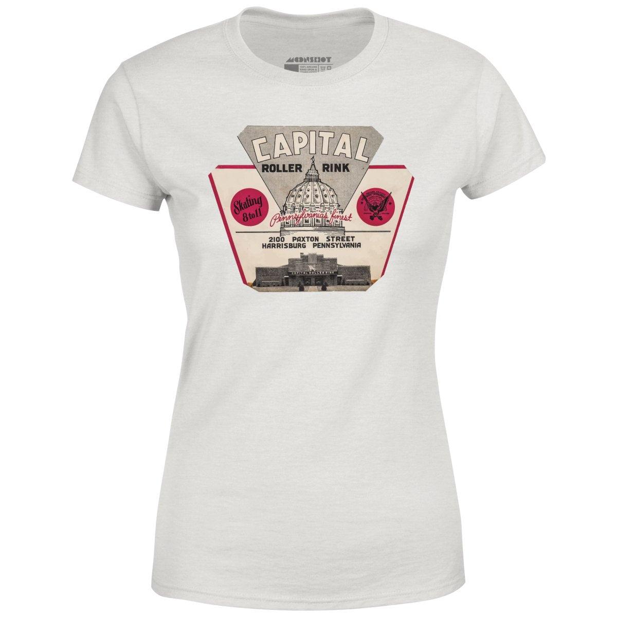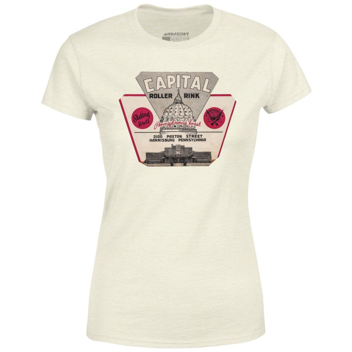 Capital Roller Rink was an old school roller skate rink that opened in 1948 in Harrisburg, Pennsylvania. This retro design is part of our iconic old school roller skating rink collection. Inspired by the classic, vintage defunct roller skating rinks of yesteryear. Printed on our super soft 100% ringspun & combed cotton women's T-Shirt. Or upgrade to our Luxury 52/48 cotton/poly vintage heather edition for an even softer classic look. We print & ship all of our high quality graphic tees in the USA.